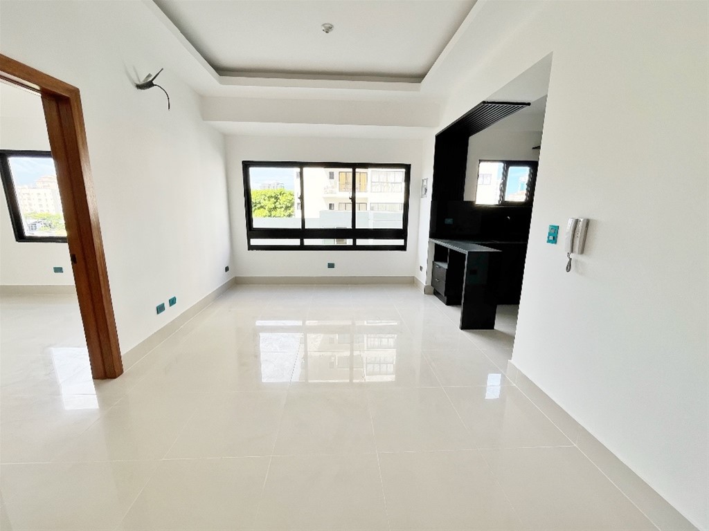 Renta de moderno apartamento ubicado en Naco Características 1 Habitación 1.5 Baños Cocina Sala Comedor 1 Parqueo Características de la Torre Lobby amueblado y climatizado Terraza techada y destechada BBQ 2 Jacuzzis Gimnasio Área de niños Sport bar 2 Ascensores Planta Eléctrica Full Gas común Intercom Portero Portón eléctrico Seguridad 24 Horas Precio: US$ 850