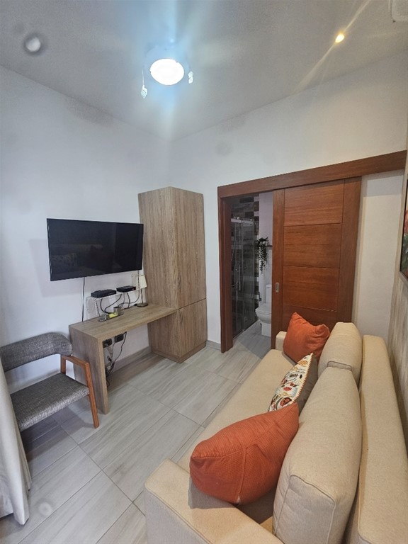 Alquiler de apartamento Amueblado en Naco US$1,400.00 incluye el Mantenimiento CARACTERISITICAS DEL APARTAMENTO 67.04m2 9no piso 1 habitacion + estudio 1.5 baños Balcón Sala Comedor Cocina Area de lavado 1 parqueo CARACTERISITICAS DEL EDIFICIO Lobby Gym Salón de eventos Terraza común Piscina Ascensor Planta full Seguridad 24/7