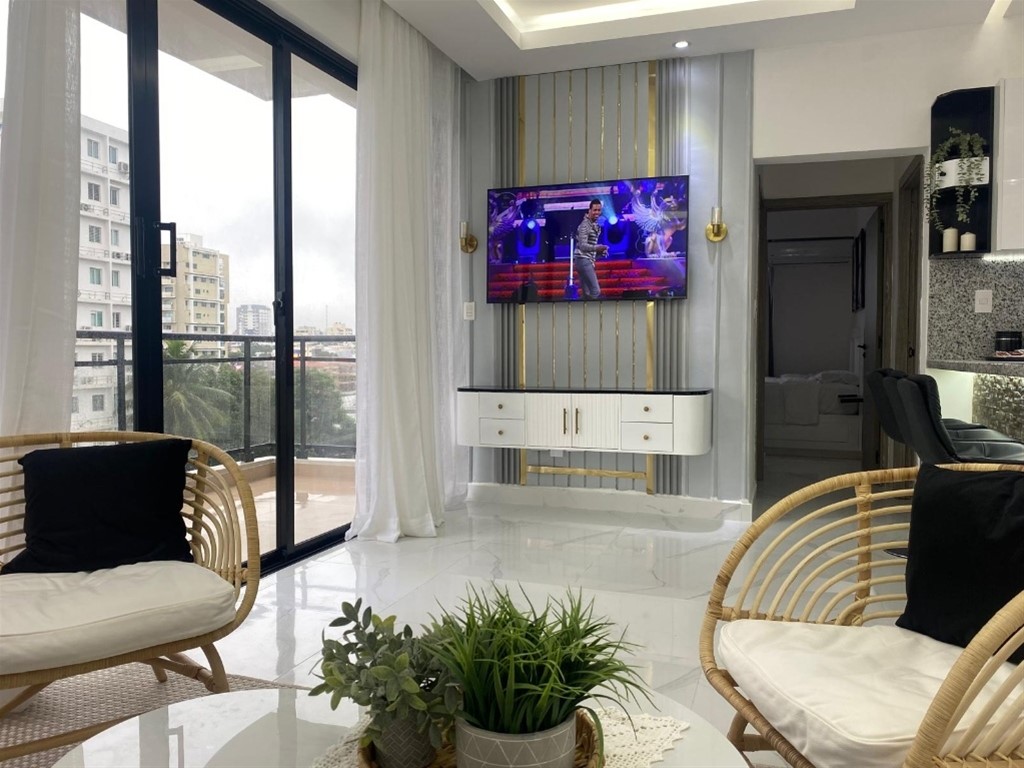 ¿Buscas comodidad, estilo y ubicación céntrica? Este apartamento completamente amueblado en una torre moderna de Naco lo tiene todo. Perfecto para quienes desean vivir con confort o invertir en una zona de alta demanda. Características destacadas: 2 habitaciones amplias con aire acondicionado y clósets empotrados 2 baños modernos Sala y comedor integrados en un espacio acogedor y luminoso Cocina equipada con línea blanca, vajilla, utensilios y tope de granito Balcón tipo terraza con vista urbana Área de lavado equipada 2 parqueos techados Amueblado con buen gusto: muebles contemporáneos, cortinas, decoración y electrodomésticos incluidos La torre cuenta con: Lobby climatizado y seguridad 24/7 Elevador Área social en el rooftop con piscina y terraza techada/destechada Planta full y cisterna Acceso controlado y cámaras de vigilancia Metraje: 113 m² Precio competitivo de venta: (USD$210,000.00) Ideal para ejecutivos, parejas, nómadas digitales o para renta a corto/largo plazo (Airbnb-friendly). ¿Interesado/a? Contáctame por mensaje directo o al WhatsApp (colocar número) para agendar tu visita. También disponible video tour y más fotos.