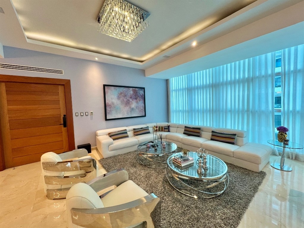 El Penthouse de 4 habitaciones que soñabas, lo tenemos en Naco! Torre con concepto familiar, ¡1 apartamento por nivel! Detalles que enamoran: • 619 m² de puro lujo • Piso 9 con vista frontal • 4 habitaciones, cada una con su baño y walk-in closet • Baño de visita • Estudio ideal para trabajar o relajarte • 2 terrazas privadas para disfrutar al aire libre • Jacuzzi para tus momentos de relax • Cocina fría y caliente • Área de lavado y cuarto de servicio • Elegantes terminaciones en mármol • 2 parqueos techados • Locker incluido Precio de venta (Amueblado): US$950,000