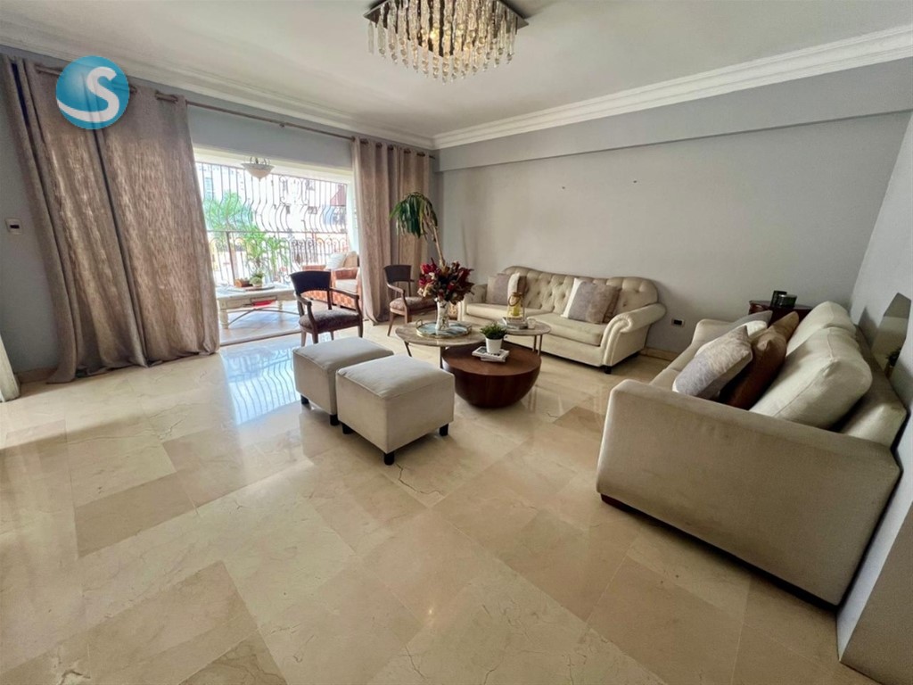 Apartamento en venta en la mejor zona de Naco: 255 mts Recibidor Sala Comedor independiente Estudio Balcón con vista frontal Cocina remodelada Family room 3 habitaciones, cada una con baño y principal con 2 closets (1 walking closet y 1 de pared) ½ baño de visitas 2 parqueos paralelos y techados Pisos en mármol La torre cuenta con: Lobby amueblado y climatizado Gym Salón multiusos Area de niños Cancha de squash PRECIO DE VENTA: US$380,000
