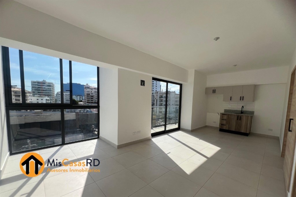 Apartamento en Alquiler | Nuevo a Estrenar – Naco 63 m² | 6to piso 1 habitación 1.5 baños 1 parqueo Sala - Comedor Balcón Área de lavado Torre moderna con: Piscina Salón de eventos US$900 (Mantenimiento incluido) Nota: Se le agregará Línea blanca