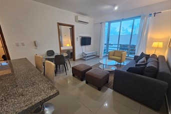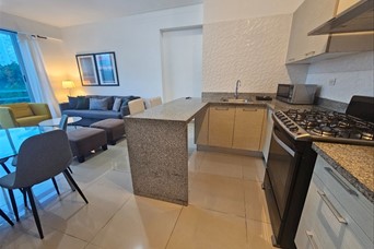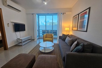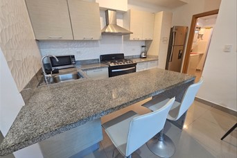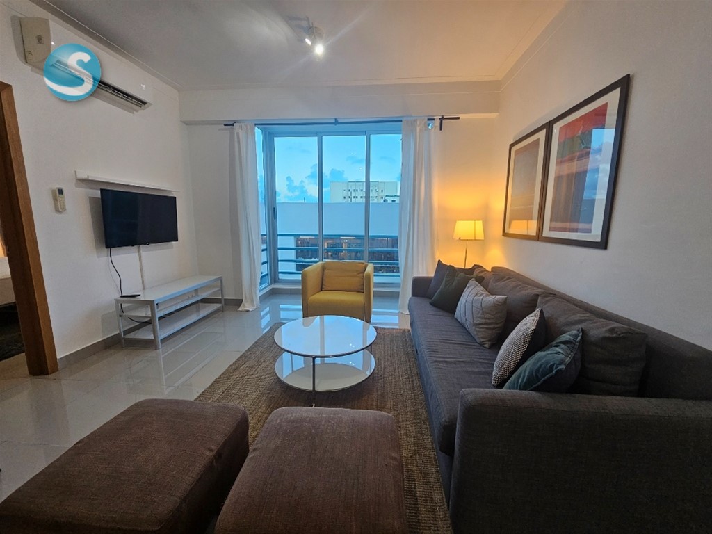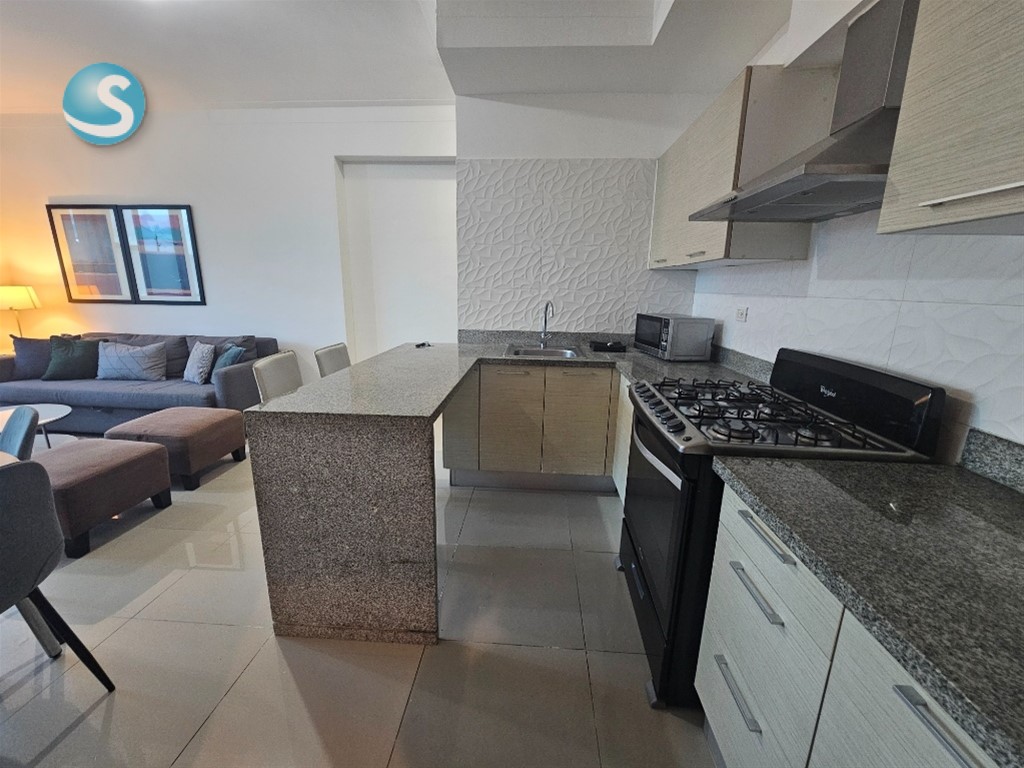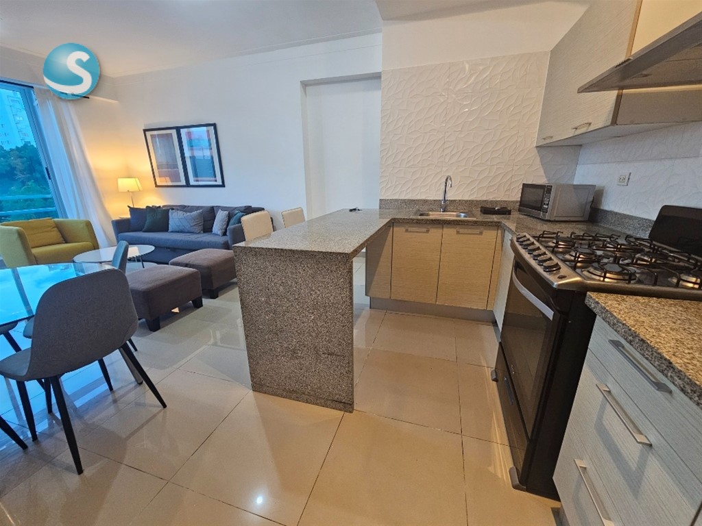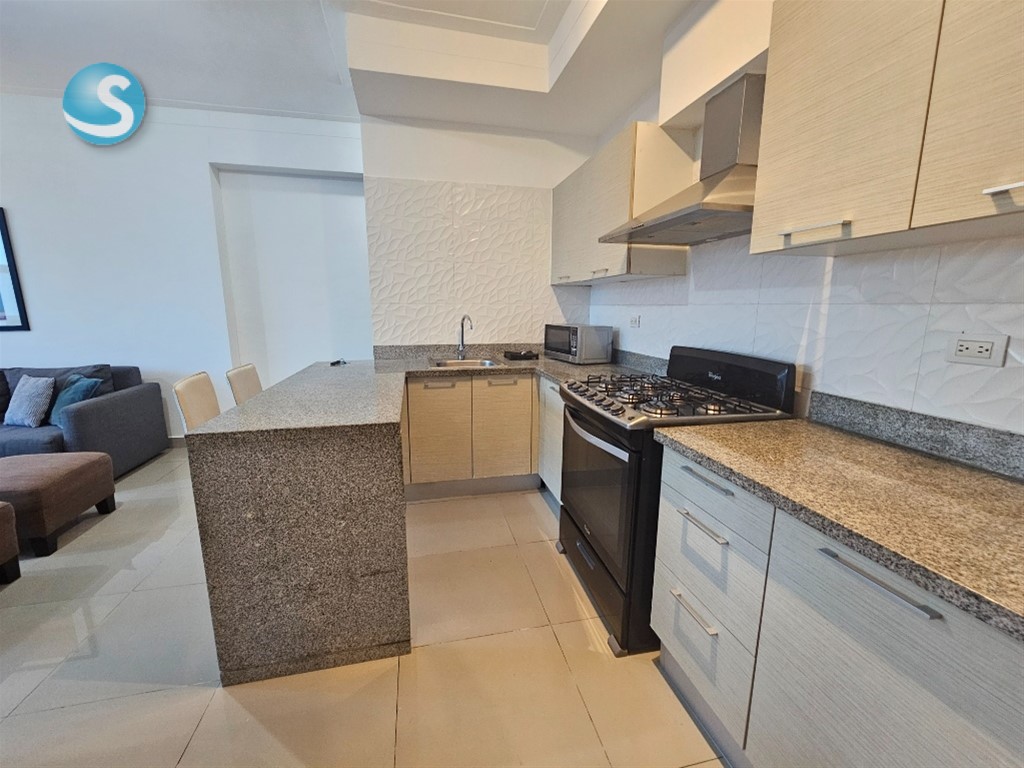 Alquilo amueblado 1 habitación con su walking closet sala comedor cocina integrada area de lavado y baño de servicio 1 parqueo lobby gym salon multiuso