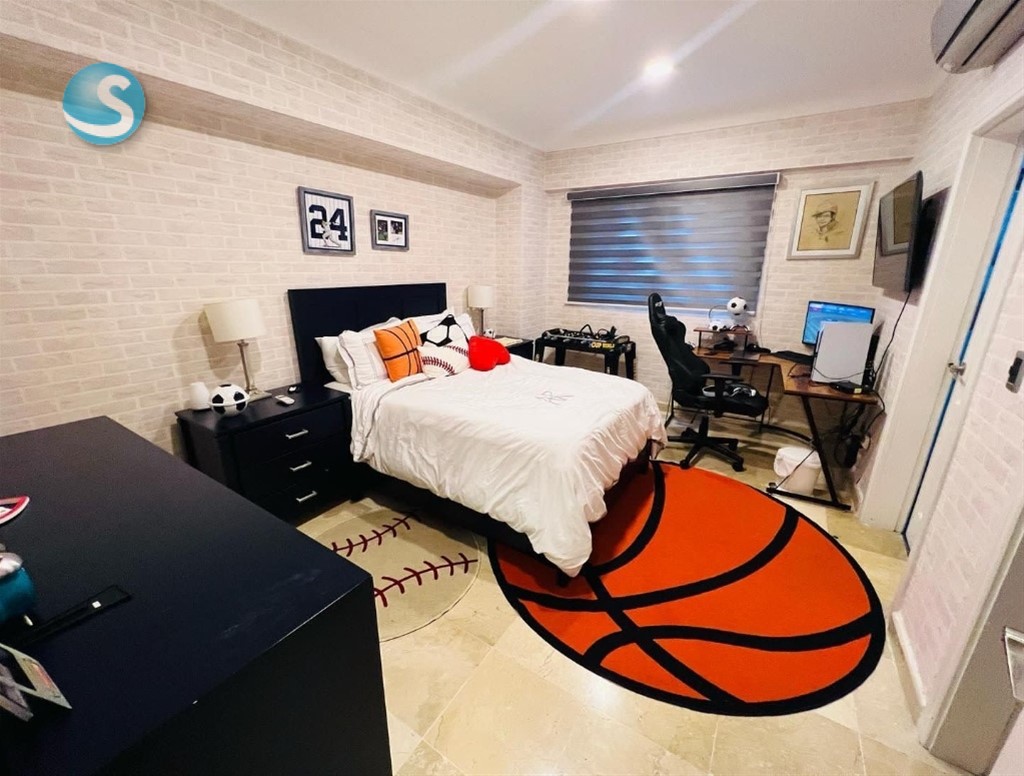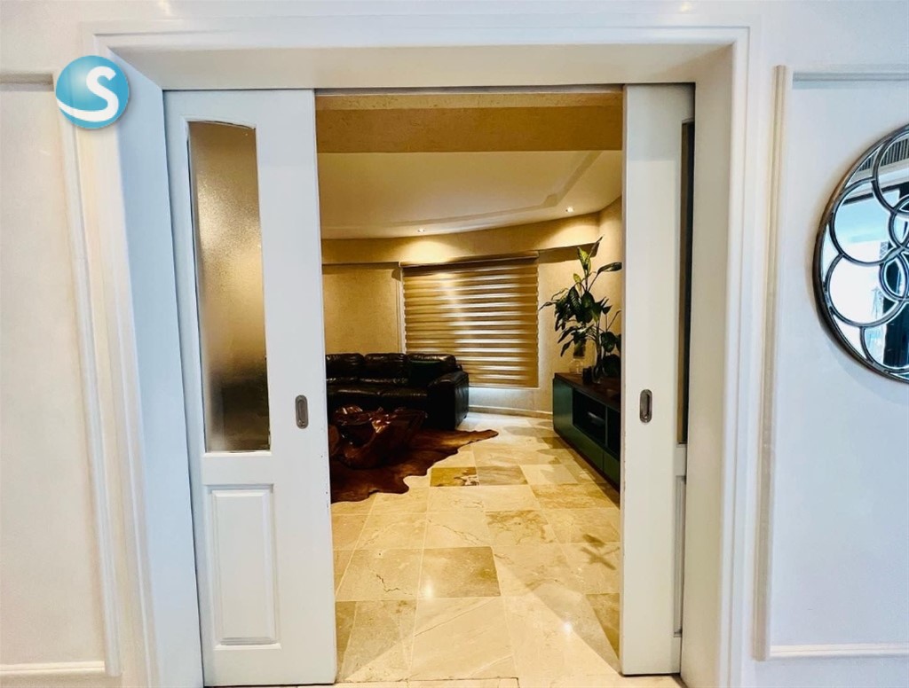310 metros netos?? 3 habitaciones 3 parqueos techados 1 Locker La habitación principal es amplia, tiene su baño conJacuzzi + bañera adicional, doble lavamanos 2 Walking closet amplió Las 2 habitaciones secundarias tienen walk-in- closet y su baño cada una * Estudio * Balcón * Doble sala * Comedor •Área de lavado * Habitación de servicio * Baño de visita •Closet de ropa blanca •Pisos en Mármol * Lobby amueblado * 2 Ascensores * ascensor de carga * ducto de basura * Seguridad 24 horas Área social completa: piscina, gym, área de niño y más