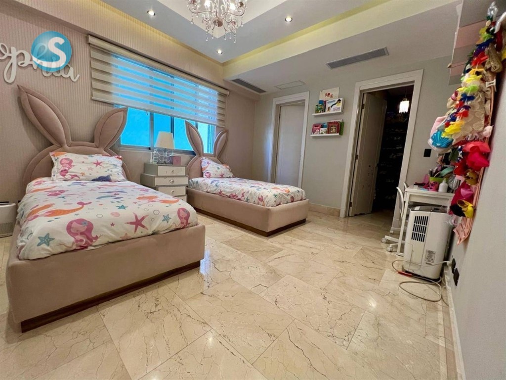 VENTA DE EXCLUSIVO APARTAMENTO EN NACO Características 1 apartamento por nivel 363,59 mts Recibidor 3 habitaciones ( cada una con walk in clóset) 3 baños completos Medio baño de visita Balcón Sala Comedor Cocina Desayunador Estudio Family room Locker 3 Parqueos paralelos Características de la torre Torre familiar Lobby climatizado Terraza común Área para bbq Piscina Área de juego para niños Salón multiuso Gimnasio 2 ascensores Planta full Gas común Cámaras de seguridad Precio de venta US$795,000 Mantenimiento RD$30,000 Informacion Virgina Baez 809-917-9805 ARI. E.