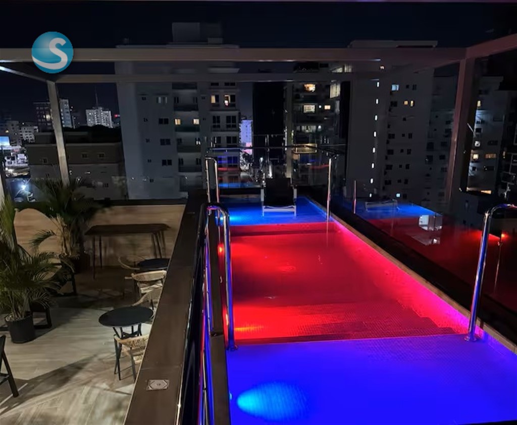Este sofisticado apartamento de 1 habitación ofrece el equilibrio perfecto entre confort, estilo y ubicación privilegiada en el corazón de Ensanche Naco. Distribución del apartamento: 1 habitación con baño privado y walking closet 1 medio baño para visitas Sala amplia y comedor moderno Cocina funcional y bien equipada Family room u oficina privada Balcón con agradable vista 1 parqueo techado Características y amenidades del edificio: Lobby elegante y climatizado Piscina y terraza para disfrutar al aire libre Ascensor Portón eléctrico Sistema de gas centralizado Aire acondicionado Seguridad y mantenimiento de primer nivel Un espacio diseñado para quienes buscan vivir con comodidad, exclusividad y accesibilidad, cerca de los principales centros comerciales, restaurantes y vías de Santo Domingo.