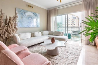 Moderno apartamento en alquiler amueblado de primera en Naco, torre con área social. 126 metros 2 habitaciones con walk in closets Baño visitas Sala Comedor Balcón Cocina con desayunador Area lavado y habitación servicio Shutters en ventanas 2 parqueos Torre con piscina, gimnasio, área juegos,salón actividades amueblado entre otros Lobby climatizado Precio US$ 2,100 #2556