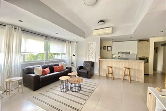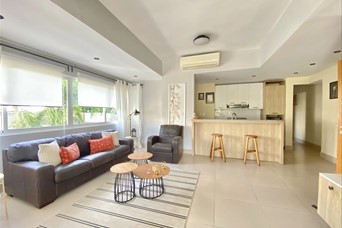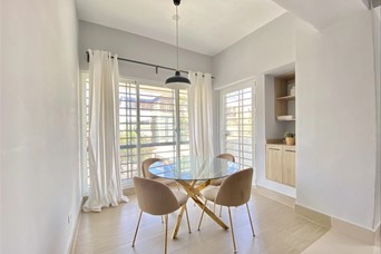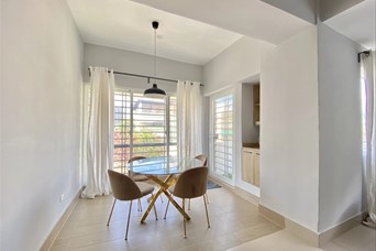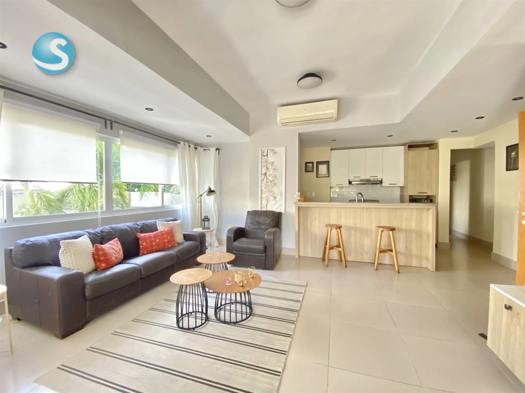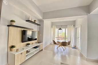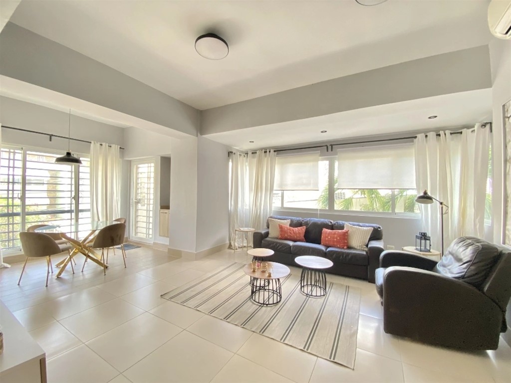 JM45274 En el corazón del prestigioso Ensanche Naco, se encuentra este espectacular apartamento en el Apto 201, que redefine el concepto de confort y estilo. Con un espacio generoso de 110 m², este moderno apartamento amueblado ofrece un santuario de tranquilidad en medio de la vibrante ciudad. La sala y el comedor cuentan con una cocina abierta que no solo maximiza el espacio, sino que también fomenta un ambiente acogedor y fácil para el entretenimiento. La distribución está pensada para complementar una vida funcional, con un área de lavado integrado y un cuarto de servicio que facilitan las actividades del día a día. El apartamento dispone de dos habitaciones bien diseñadas, siendo la principal un refugio tranquilo con su propio baño incluido, asegurando privacidad y comodidad. Además, los residentes tienen acceso a su propia terraza exterior privada donde pueden disfrutar de una taza de café en la mañana o relajarse al final del día, todo con vistas panorámicas que enamorarán a cualquiera. Otro atractivo de la propiedad es la magnífica área social situada en el piso 12, que cuenta con un gimnasio completamente equipado, ideales para mantener un estilo de vida activo sin siquiera salir del edificio. La ubicación de este apartamento es simplemente inmejorable. Situado en una calle tranquila de Naco, los ocupantes disfrutarán de la cercanía a una variedad de comercios y servicios esenciales, lo que hace que cualquier necesidad diaria esté a solo un paso. La residencia también incluye comodidades como gas común, agua y conserjería, con el mantenimiento incluido en el costo del alquiler, lo que garantiza una experiencia de vivienda sin preocupaciones. Este apartamento se presenta como una opción ideal tanto para ejecutivos como para familias que buscan un espacio sofisticado y conveniente en uno de los barrios más seguros y demandados de la ciudad. Con dos estacionamientos lineales asignados, la conveniencia y accesibilidad están a un nivel superior, realzando aún más el atractivo de esta magnífica propiedad. No pierdas la oportunidad de vivir en un lugar donde cada detalle ha sido cuidadosamente considerado para mejorar tu calidad de vida.