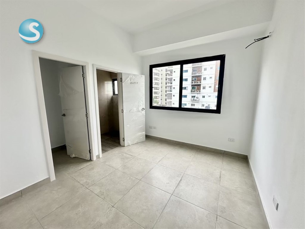 159 mts totales. 135 mts netos. - Dos (2) habitaciones con baños y walk-in clóset ? Baño de visitas Sala Comedor? Estudio con balcón Balcón Cocina Área de lavado? Habitacion de servicio Dos (2) parqueos - La torre dispone de un lobby climatizado y amueblado, dos (2) ascensores, áreas sociales con piscina y jacuzzi, gimnasio equipado, área infantil techada y salón de eventos.