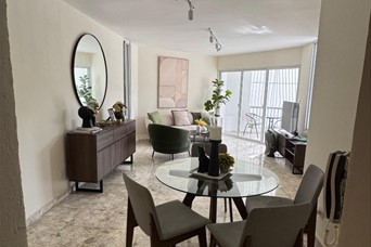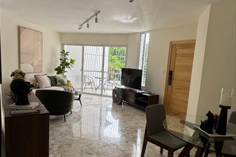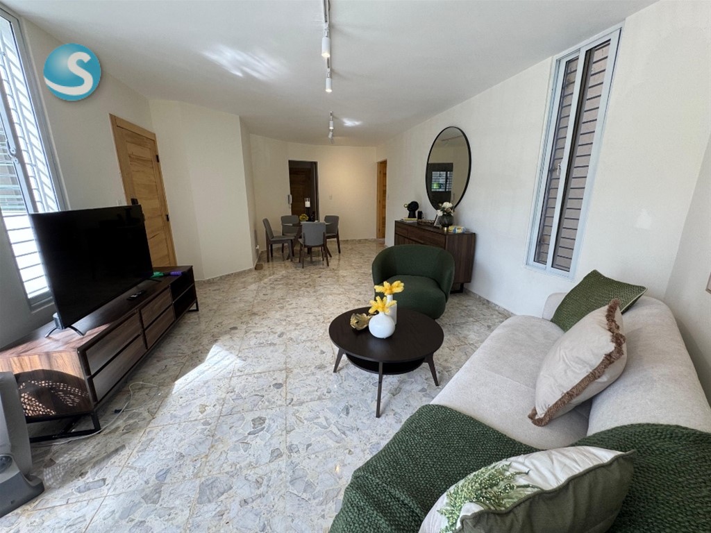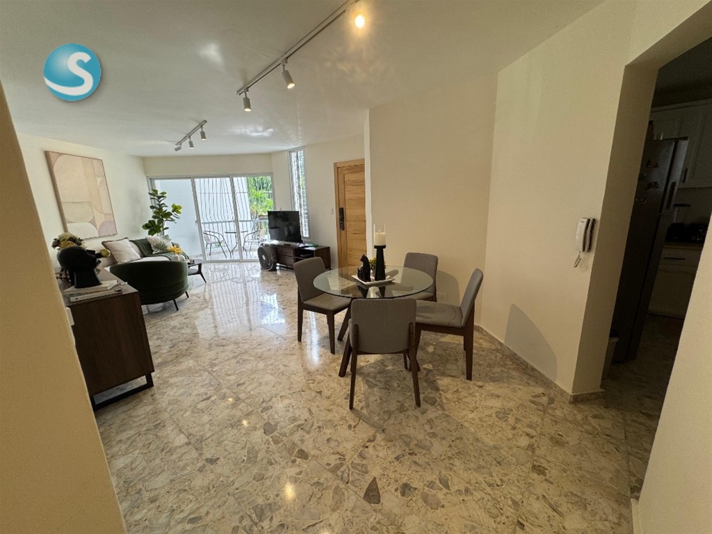 Apartamento clásico recién remodelado con ubicación privilegiada en el Ensanche Naco. A pocos pasos de las Av. Lope de Vega y Abraham Lincoln en calle cerrada tranquila. Vivir en el centro de la ciudad sin ruido de tráfico en tu calle. 128 metros cuadrados 3 habitaciones 2 baños Habitación principal con baño Sala-comedor Balcón Cocina Área de lavado Cuarto de servicio con baño Clóset de ropa blanca 1 parqueo 2do piso Tinaco Pisos recién tratados, nuevas puertas de madera , iluminación y pintura en óptimas condiciones Mantenimiento RD$3,000