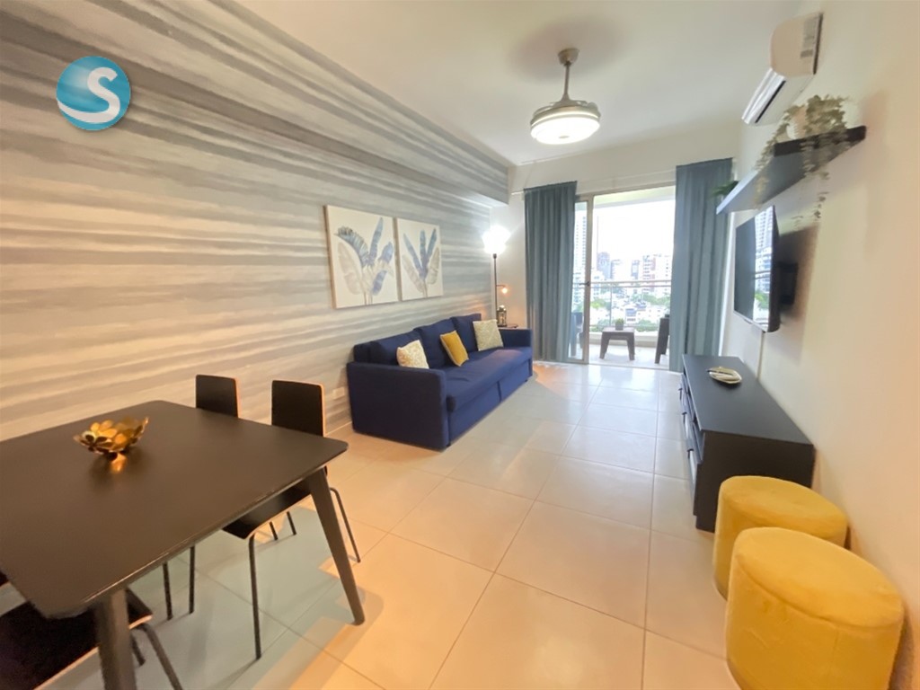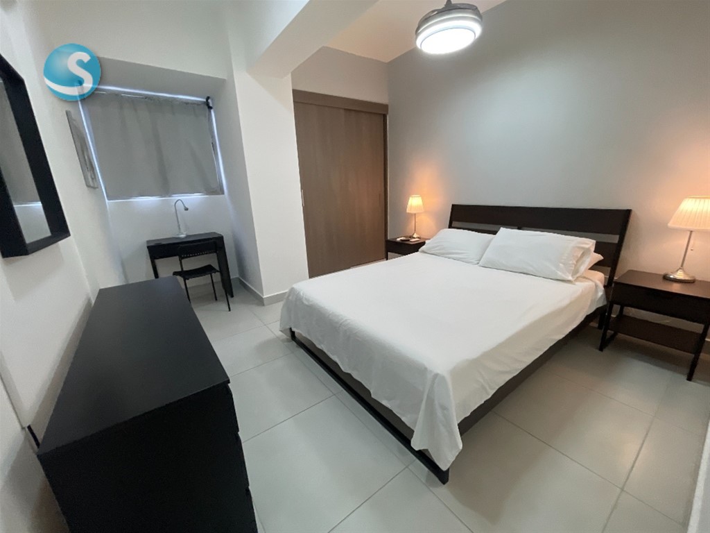 Moderno apartamento de 63.15 m² completamente amueblado en torre premium del exclusivo sector de Naco. La propiedad cuenta con 1 habitación con baño privado y walking closet, medio baño de visita, cocina abierta tipo americano, sala-comedor integrado, balcón y 1 parqueo techado. El edificio ofrece excelentes amenidades incluyendo 2 terrazas con jacuzzi y área de BBQ, gimnasio equipado, 2 salones multiusos, área infantil, seguridad 24/7 y acceso controlado. Ubicado en una de las zonas más cotizadas de Santo Domingo, cerca de Av. Tiradentes, restaurantes, bancos, hospitales y centros comerciales. Ideal para profesionales, parejas jóvenes o como inversión con alto potencial de renta. Listo para mudarse o rentar inmediatamente. AMENIDADES ? 2 Terrazas con jacuzzi y BBQ | ? Gimnasio | ? 2 Salones multiusos | ? Área infantil | ? Seguridad 24/7 | ? Lobby | ? Ascensores | ? Parqueo visitantes | ? Planta eléctrica