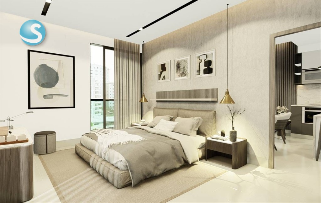 La torre redescubre el uso de los balcones y se convierten en el centro de su arquitectura. Cada unidad incluye espacios exteriores que permiten una experiencia directa con el exterior, libre de con?namiento. Los brises-soleil en los balcones angulares acentúan la expresión del edificio. Torre Le Blanc busca tener una fuerte presencia en el desarrollo urbano y la explosión del diseño arquitectónico contemporáneo en la ciudad. La misma cuenta con apartamentos de 1, 2 y 3 habitaciones. A M E N I D A D E S • Ya sea para familias jóvenes o como casa de retiro, la compra de planos se convierte en una inversión inteligente en la que tiene la oportunidad de adquirir la casa de sus sueños sin presión. • Nuestras unidades completas están diseñadas con todas las comodidades Un costo accesible; en una de las mejores ubicaciones de Santo Domin- go, el Polígono central. • ROOFTOP • PLAYGROUND • POOL • GYM • TRACK • SOCIAL ROOM • OUTDOOR LOUNGE Pocos lugares en la ciudad son tan acogedores para, familias jóvenes y jubilados como Torre LeBlanc. El plan de pago sin intereses de varios años hace que adquirir la residencia de sus sueños en este paraíso caribeño sea una inversión particularmente buena. Plan de pago: Separacion: USD 5,000 10% a la firma 40% Durante construccion 50% Contra entrega Fecha de entrega : Diciembre del 2025 #1071