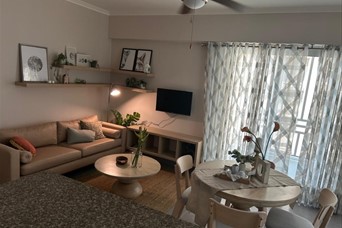 Alquilo amueblado en calle tranquila y residencial de naco acogedor apartamento totalmente amueblado pequeño balcon sala comedor cocina medio baño 1 habitación con closet y baño 1 parqueo lobby