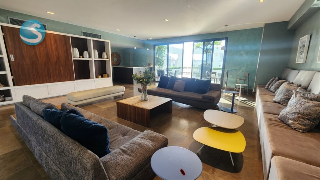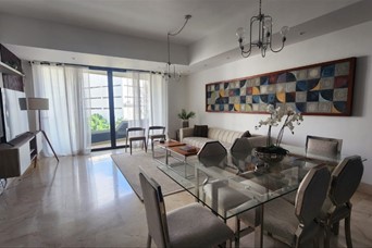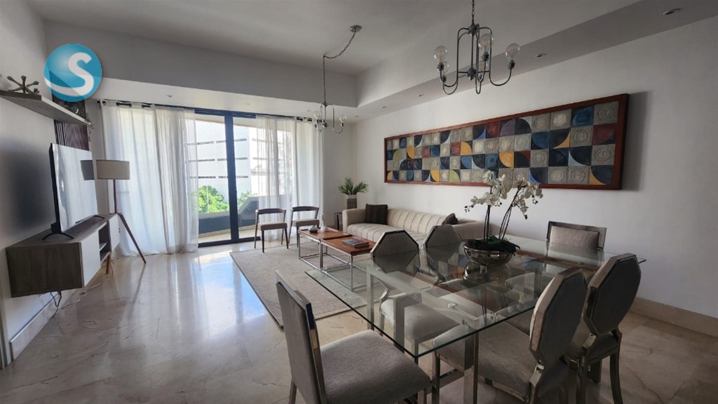 Apartamento amueblado de 2 habitaciones en alquiler en Naco. Ubicación premiun próximo a la Lope de Vega y Av. Tiradentes. Piso 5 2 habitaciones. Habitación principal con walk-in closet y habitación secundaria con closet 2.5 baños Sala Comedor Cocina cerrada con área de lavado No tiene cuarto de servicio Balcón amplio 2 parqueos paralelos La torre cuenta con: Ascensor Gimnasio equipado Área de niños Terraza destechada Salón para reuniones finamente amueblado y climatizado. ALQUILER MÍNIMO 1 AÑO US$1,600.00 Debe contar con fiador solidario.