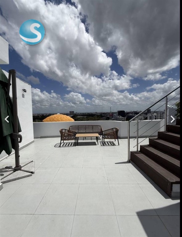 Apartamento en alquiler en ensanche naco con línea blanca 1 Habitaciones 1 1/2 Baños Cocina Sala balcón 1 parqueos Piscina Gym Area social Mantenimiento incluido Picuzzi US$850