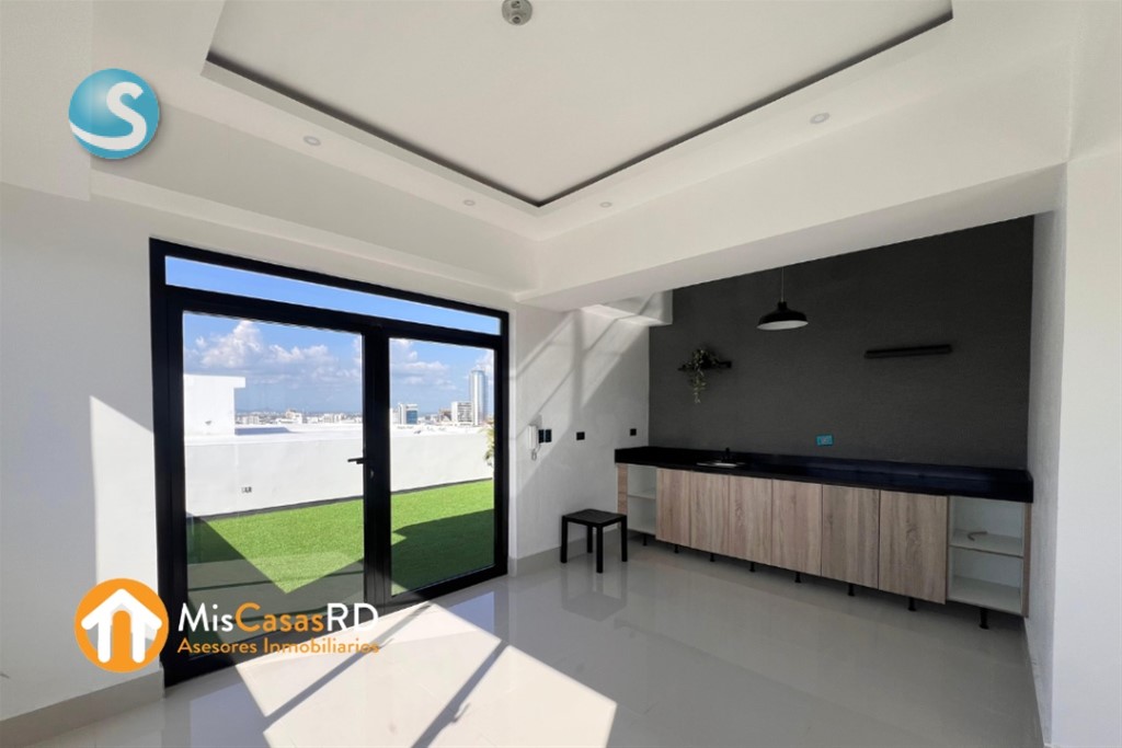 Apartamento en Alquiler en Naco A Estrenar 5to piso 74.14 m² Distribución: Sala–comedor Cocina 1 habitación 1.5 baños 1 parqueo Amenidades del Residencial: Jacuzzi Terraza Gimnasio Salón de eventos 2 ascensores Gas común con medidor Planta full Alquiler: US$850 (mantenimiento incluido)