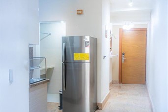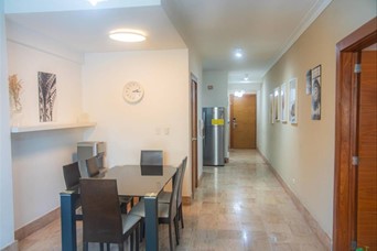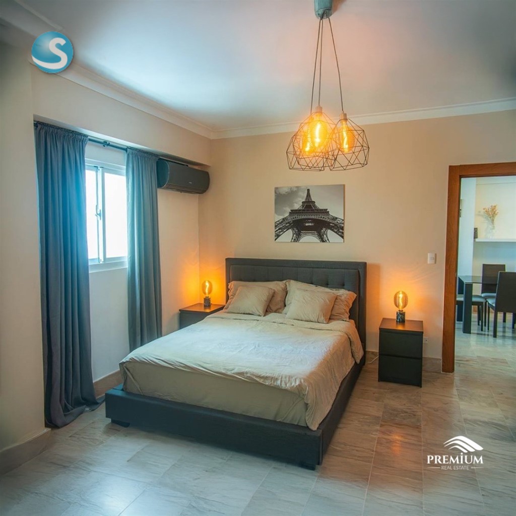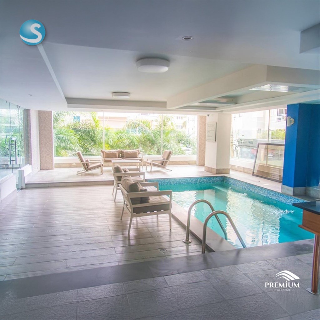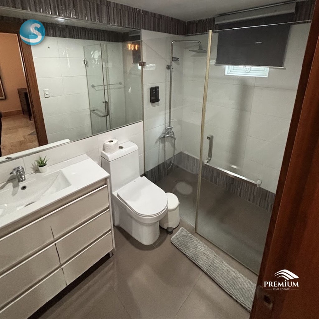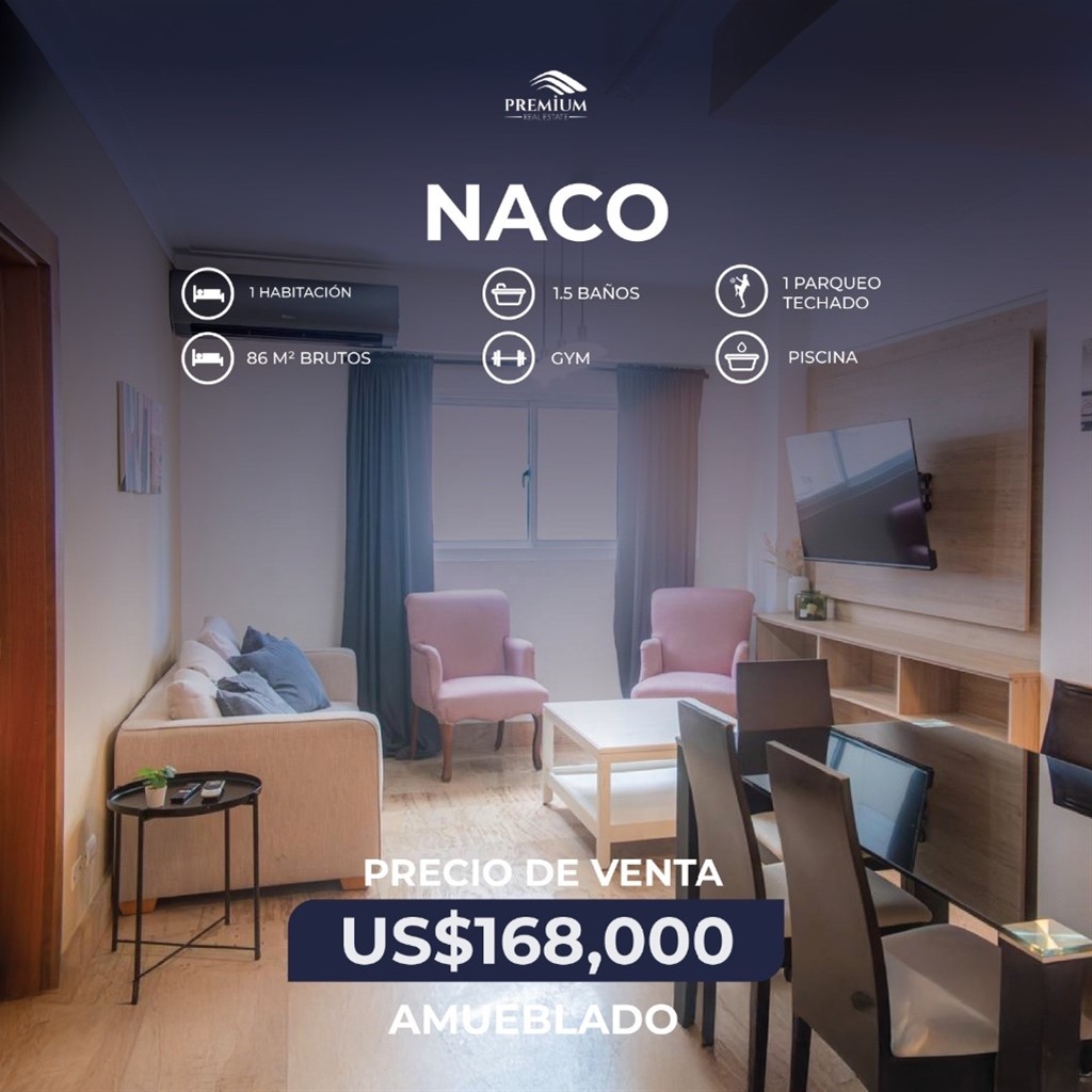 Naco | Venta Amueblado Nivel: 12 Metraje: 86 m² brutos / 75 m² netos Distribución: 1 habitación con baño y amplio walk-in closet 1.5 baños Cocina Área de lavado Sala / Comedor integrados 1 parqueo techado Amenidades: Lobby Sauna Gimnasio Piscina Precio de venta amueblado: US $168,000