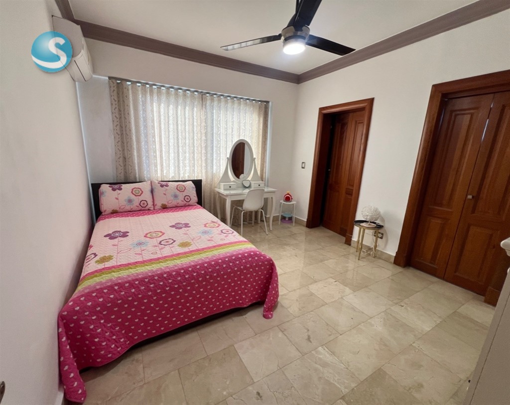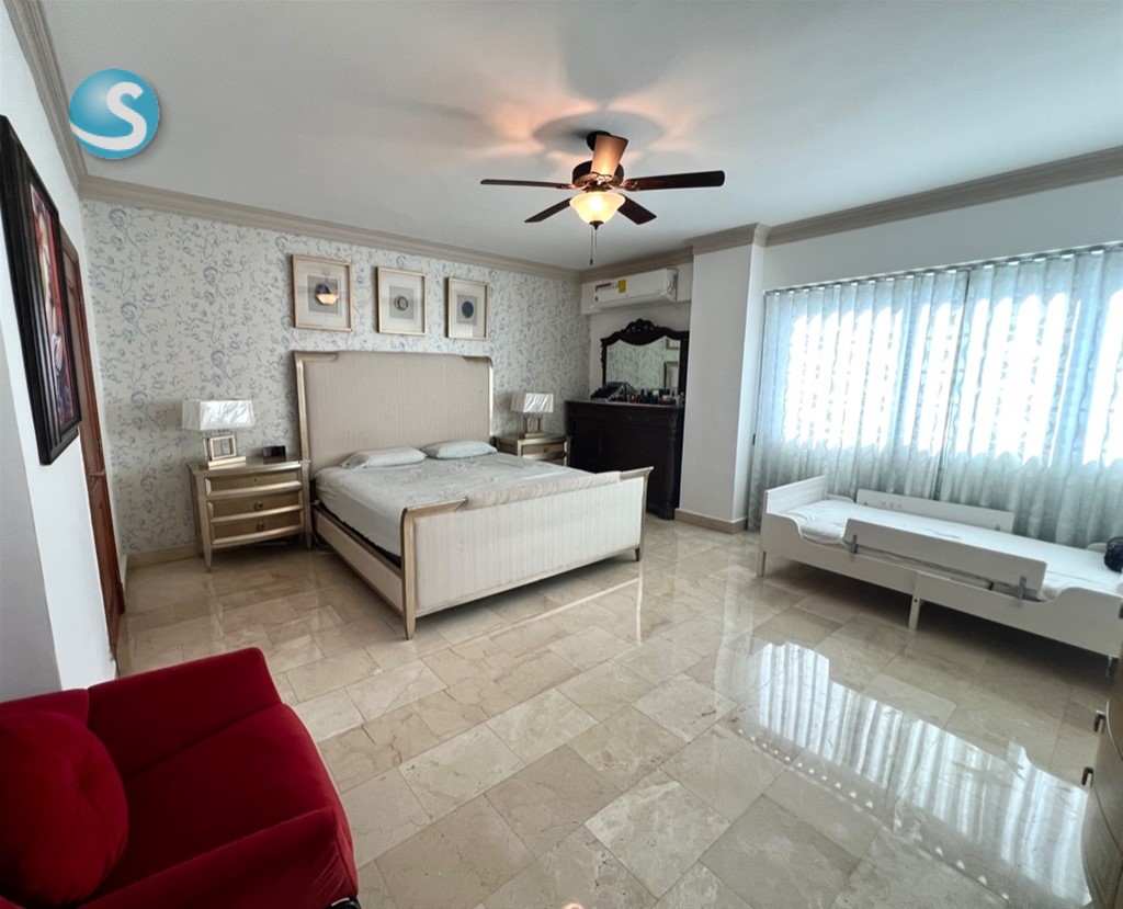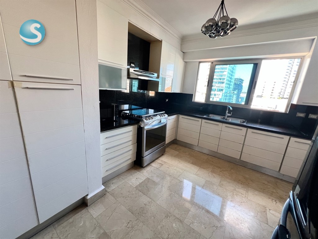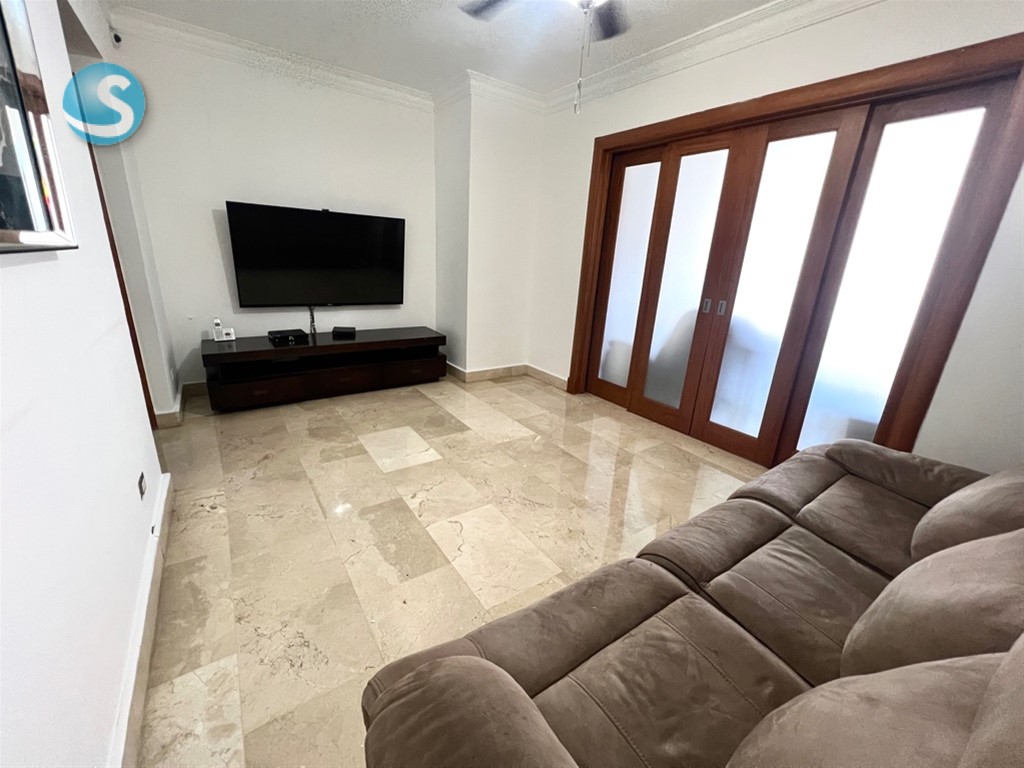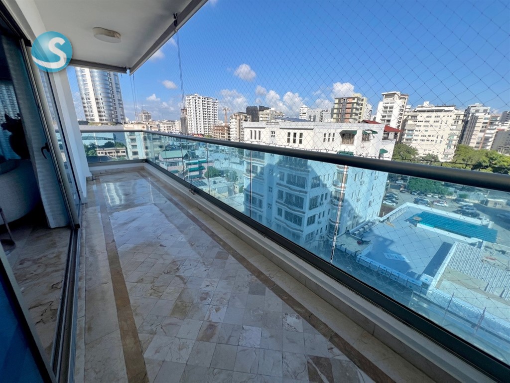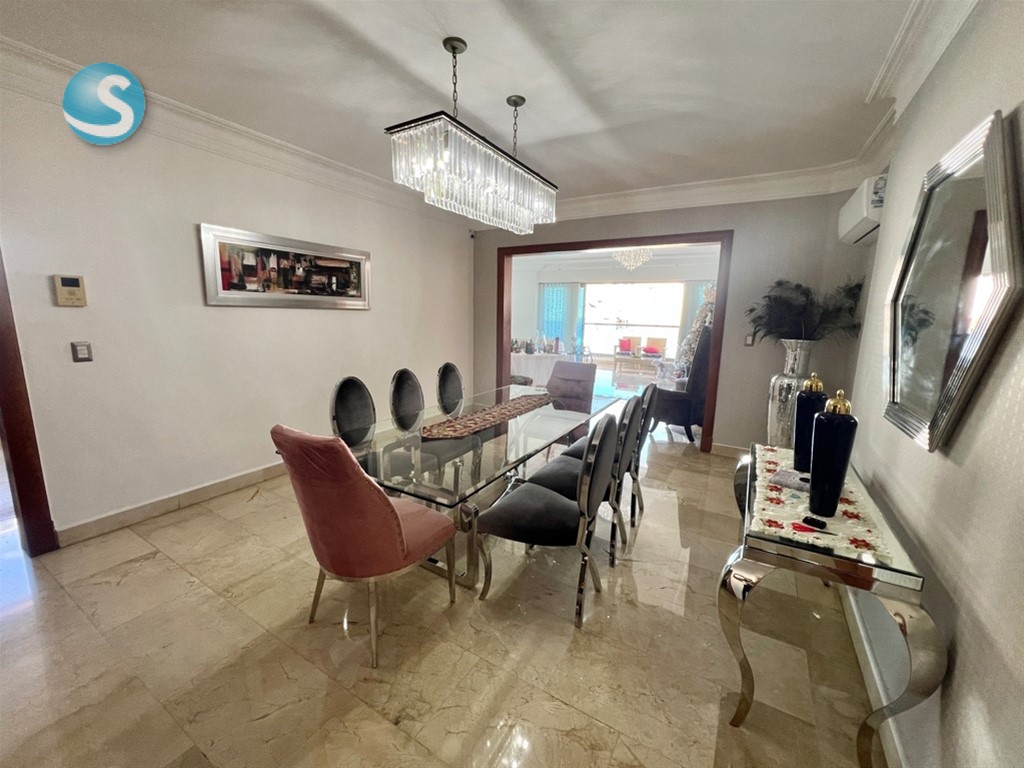 Amplio y completo apartamento con todos los espacios necesarios para tu familia, este apartamento lo tiene todo. Ubicado en un nivel 9 con vista completamnete despejada, amplio balcón, estudio, family room, 3 habitaciones cada una con su baño y su walk in closet. Piso 9 240 mts netos 3 habitaciones 3.5 baños Balcón Family Room Estudio Pisos en mármol 3 parqueos Para mas información contactarse con: Juliana Sánchez Remax Metropolitana Cel: 829-6909123