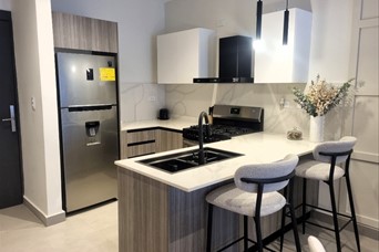 Alquiler apartamento en Naco, nuevo, modernamente amueblado y equipado PRIME RESIDENCE es una espectacular torre de apartamentos ubicada en el sector Naco. Posee un diseño moderno y elegante, donde el buen gusto y la calidad se vuelven protagonistas para hacer de este, el lugar ideal para vivir. La propiedad se entrega amueblada y lista para habitar, con sala, cocina equipada, una habitación y un baño completo, más medio baño para visitas. Cuenta con un parqueo privado y una infraestructura pensada para tu comodidad diaria. Características • 1 habitación con su baño y vestidor • Sala - Comedor • 1 baño de visita • Cocina modular con desayunador • Balcón y área de lavado • 1 parqueo techado • 4 ascensores NOTA: Incluye el Internet Área Social nivel 8 • Imponente Lobby de lujo • Piscina infinity y Bar • Planta eléctrica full • Deck para tomar el sol • GYM completamente equipado y climatizado • Gran salón múltiuso • Pista para correr (runnig track) • Area de juego infantil • Salón para choferes • Sala de Cine Lugares de interés en l zona Embassy Suites by Hilton Santo Domingo • Central gastronómica • Colegio Luis Muñoz Rivera • Supermercados Nacional y Sirena • Plaza Naco • Club Body Shop • Novo-Centro