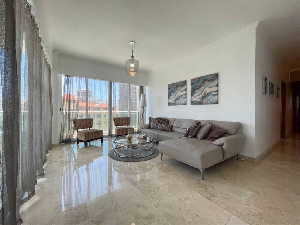 Apartamento en renta totalmente amueblado PISO 7 Ensanche Naco 3 habitaciones 3.5 baños Sala Balcón Comedor Cocina Área de lavado Habitación de servicio 2 parqueos paralelos TERMINACIONES Piso en mármol Jambas Moderna cocina modular CARACTERISTICAS DEL RESIDENCIAL Portón eléctrico Ascensor Luz 24 horas Planta full Área de juegos Gimnasio Lobby Cisterna Pozo Cámaras de seguridad Terraza común Gas común Precio de renta US$1700 amueblado