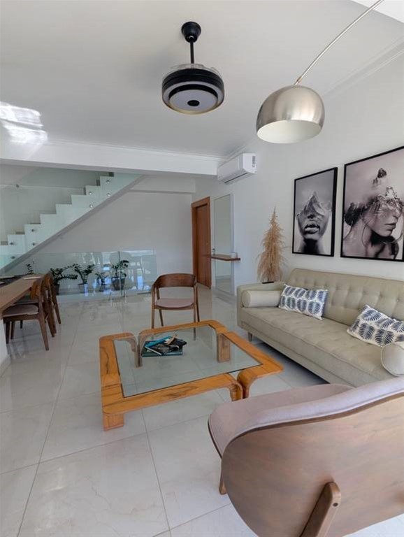 Código: 2844 Exclusivo apartamento tipo penthouse de tres niveles, ubicado en el prestigioso sector de Naco, dentro de una torre de lujo con amenidades diseñadas para un estilo de vida moderno, cómodo y sofisticado. Con una superficie total de 192 m² y una distribución inteligente en tres niveles, esta propiedad ofrece amplitud, privacidad y espacios ideales tanto para vivir como para invertir. Distribución del apartamento: Segundo nivel Área social principal con elegante sala y comedor, cocina funcional, medio baño de visitas, área de lavado y habitación de servicio con su baño. Primer nivel Amplia habitación principal con baño privado y espacioso walk-in closet. Habitación secundaria con clóset y baño completo. Pasillo con área de trabajo integrada, ideal para oficina en casa. Tercer nivel Gran family room, terraza privada y baño completo, perfecto para entretenimiento, reuniones o zona de relajación. La propiedad incluye dos parqueos techados. Amenidades de la torre: Lobby de lujo Dos ascensores Sport bar Gimnasio equipado Salón multiusos Precios: Venta: US$350,000 (sin muebles) Alquiler: US$2,100 amueblado Una propiedad única en Naco que combina ubicación premium, diseño moderno y amenidades de alto nivel. Ideal para quienes buscan vivir con estilo o realizar una inversión inmobiliaria sólida en Santo Domingo.