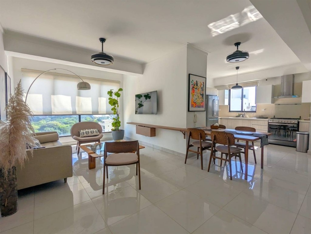 Apartamento tipo penthouse de 2 habitaciones, de 3 niveles ubicado en el exclusivo sector de Naco, en torre de lujo con amenidades DISTRIBUCIÓN: • 2do nivel Entrada, Sala, comedor, cocina, 1/2 baño, area de servicio con baño, area de lavado. • 1er nivel Amplia habitación principal con amplio walk in closet y baño, habitación secundaria con closet y baño, pasillo con area de trabajo con escritorio • 3er nivel, amplio family room y terraza, 1 baño completo 2 parqueos 192 M2 CARACTERSITICAS DE LA TORRE: - Lobby de Lujo - 2 Ascensores - Sport Bar - Gimnasio - Salon Multiusos Precio para la venta US$350,000 (sin muebles) Precio alquiler US$2,100 amueblado
