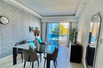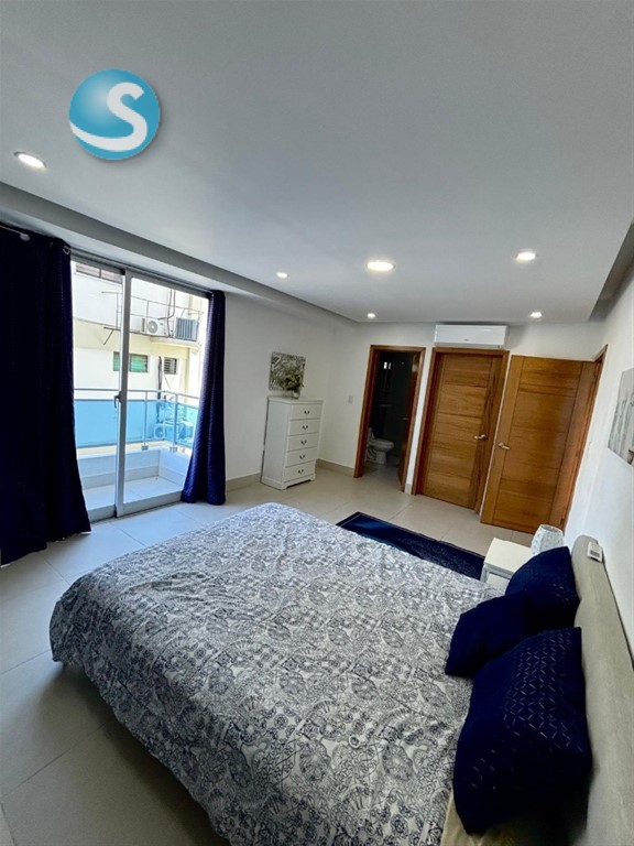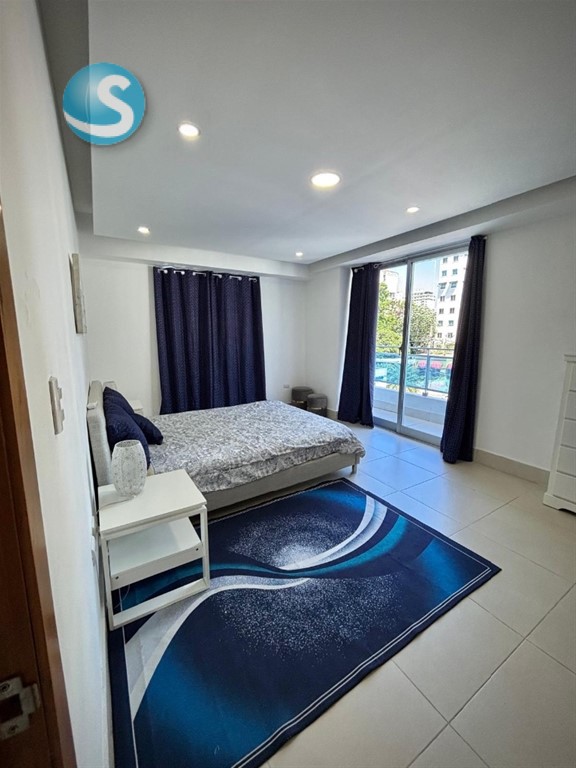 Alquilo Apartamento Amueblado Amplio, fresco y luz natural en : Naco Piso 3 75 mt2 Sala Comedor Desayunador Amplia Cocina 1 habitación, con su baño y Walk-in-Closet 1/2 baño de visita Área de lavado 1 parqueo Áreas sociales comunes Gym, Piscina, salón de juegos, área de BBQ Planta full Gas común Ascensor ultima generación Circuito camaras seguridad Vigilancia 24/7 US $750 USD Mantenimiento incluido