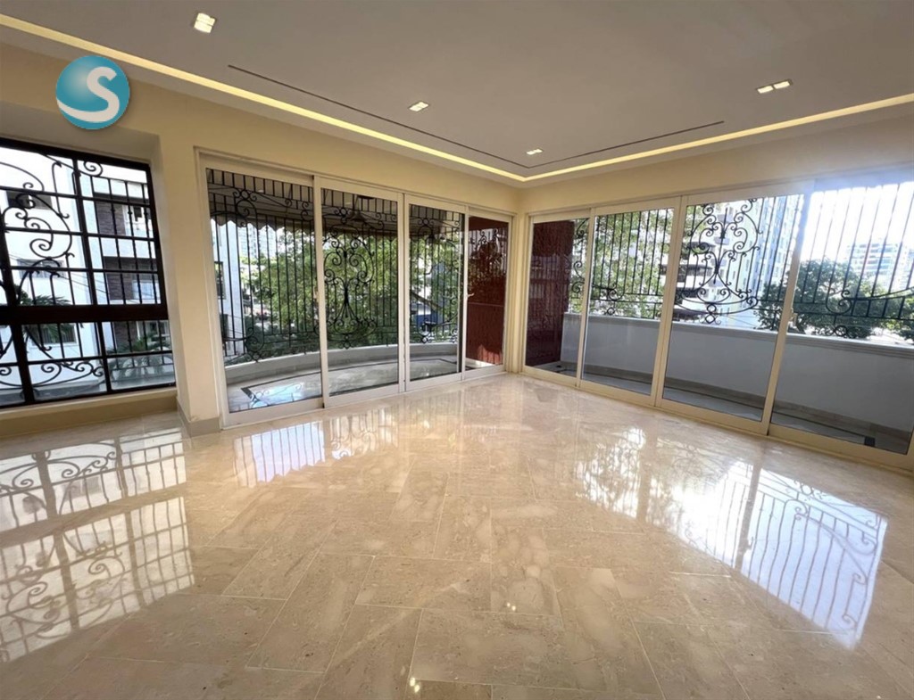 Clásico apartamento ubicado en excelente calle del sector de Naco, completamente remodelado con terminaciones de primera. Un solo apartamento por nivel, solo 7 familias. Caracteristicas: 3 habitaciones cada una con su baño 1 baño de visitas 2 balcones Amplia sala y comedor Estudio Cocina ( remodelada y con buena iluminación natural) Area de lavado Cocina caliente Habitación de servicio Recibidor 2 parqueos 302 mts2 Torre cuenta con: Lobby Pozo de agua Ducto de basura Ascensor Precio de Venta: US$540,000