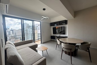 ALQUILO Apartamento AMUEBLADO De 2 Habitaciones Torre Con Amenidades En Naco - 8vo Piso - 94Mt2 - 2 Habitaciones - 2 Baños - 1 Parqueo Techado - Sala/Comedor - Cocina - Área de lavado - Balcón - Lobby Climatizado - 2 Ascensores - Picuzzi - Rooftop - GYM - Planta full - Gas común - Seguridad 24/7 PRECIO: US$1,450 Mantenimiento Incluido.