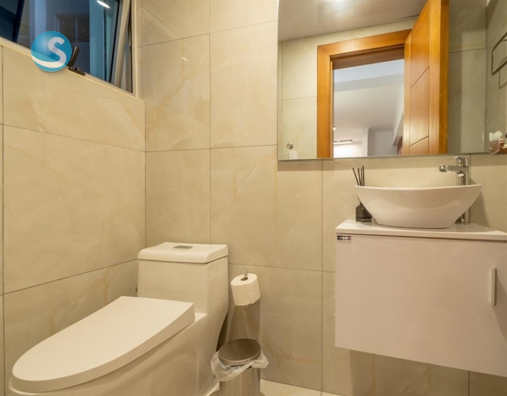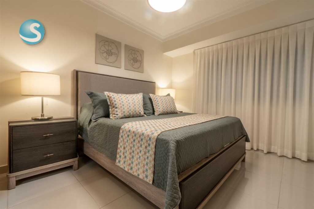 Hermoso Apartamento totalmente Amueblado en venta, 1 habitación, Naco - 1 habitación w/wcloset - 1.5 baños - Sala - Comedor - Cocina con desayunador - Área de lavado - 2 parqueos techados - Piso 11 - 69 mts2 - Malla de Protección en todos los ventanales - Locker Áreas Sociales - Piscina - Gimnasio - Area de juegos de niños - Terraza - Sport Bar Precio Venta Amueblado: US$ 270,000