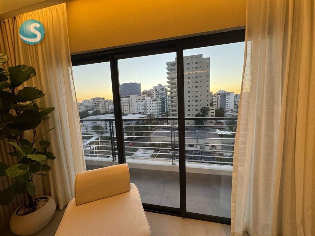 Alquilo Apartamento totalmente amueblado de una Habitación en el sector de Naco. Características de la Propiedad: 65 metros Sala Comedor Cocina Balcón Habitación principal con Walking Closet y su Baño Baño de visitas Amenidades de la Torre: Lobby Ascensor Piscina Gimnasio Terraza Área de juego para niños Salón de reuniones PAA-016-01-25