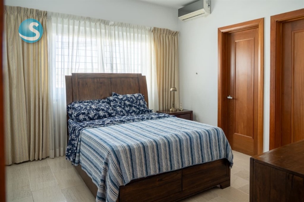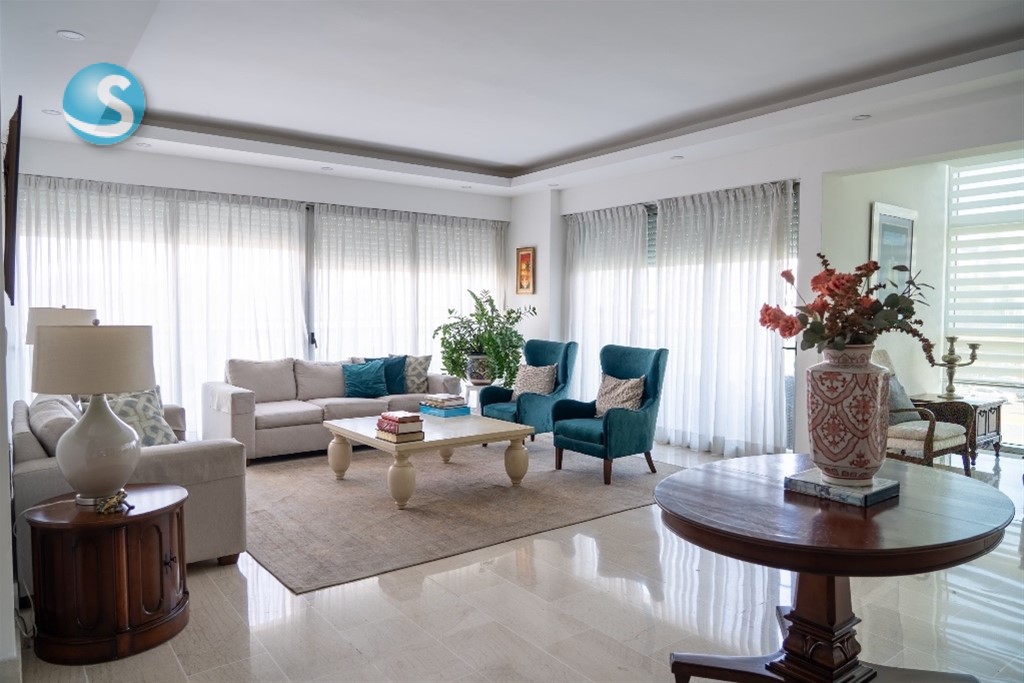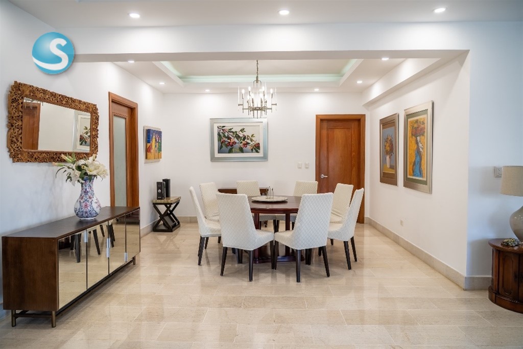 Alquiler en Naco amplio apto. Y amueblado 271 metros 3 habitaciones Hab principal con baño y walking closet Cada hab con baño y closet 1/2 baño de visita Cuanto de servicio con su baño Área de lavado Dos salas Comedor Cocina Blanco amplio en L frontal Balcón trasero área de la cocina Lobby privado integrado el ascensor abre dentro Área de juego Precio de alquiler Us$3500
