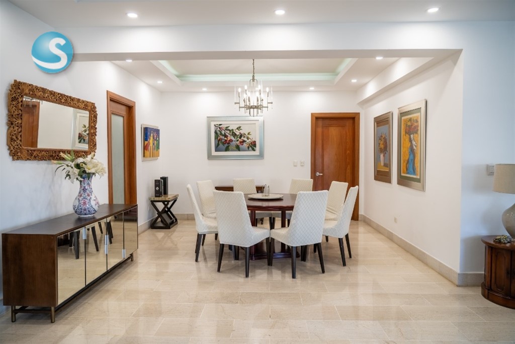 EXCELENTE TORRE!!! FAMILIAR , BUENA DISTRIBUCIÓN Y TERMINACIÓN Naco 271 metros 3 hab Hab principal con baño y walking closet Cada hab con baño y closet 1/2 baño de visita Cuanto de servicio con su baño Área de lavado Dos salas Comedor Cocina Blanco amplio en L frontal Balcón trasero área de la cocina Lobby privado integrado ( ascensor directo al apto) Área de juego Us$3500