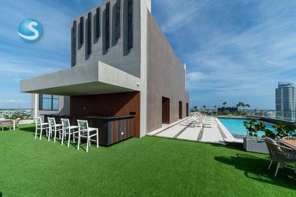 Vive o invierte en esta súper Torre recién construida y en lo mejor de Naco, a pasos de grandes centros comerciales, restaurante, Clubes, parques entre otras. Además de las amplias y cómodas amenidades que ofrece la Torre. Que combina estilo, comodidad y las amplias y despejadas vistas de la ciudad. Y lo mejor, Aún tenemos unidades disponibles con amplios balcones y otras con terrazas con pre instalación de Jacuzzis vistas y vistas panorámicas de la ciudad y al mar. Este moderno apartamento ofrece un espacio abierto lleno de luz natural, con acabados modernos y un diseño contemporáneo que maximiza cada rincón. Ven y escoge la unidad que se adapta a tus necesidades ya que tenemos aptos. Tipo loft, la cual es una es la opción perfecta para quienes buscan menos Espacio, sin perder el estilo y la comodidad de tener una amplia terraza en las alturas!! Que espera. ?? Contáctanos ya y reserva la tuya!! Características de esta Unidad: ventilado e iluminado apartamento en el Piso 17 con amplias vistas y cuenta con 163 metros construcción distribuidos en 2 niveles: 1er nivel con: 1/2 baño de visita Sala- cocina abierta con un amplio balcón Un Dormitorio que conecta con el balcón de la sala y además con baño y walking closet Área de lavado y escalera interna que te lleva al: 2do. nivel que cuenta con: Un recibidor Un 2do. Dormitorio que conecta con la amplia terraza privada y además con baño y walking closet Dentro de sus comodidades se destacan: Administración hotelera (Renta corta y larga Entrada circular tipo hotel Servicio de valet parking Lobby elegante y climatizado, de doble altura, con espacios lujosos y cómodos para la espera de sus huéspedes ¡¡Restaurante con terraza abierta!! Servicio hotelero en las habitaciones Además, contamos con una Amplia Área social súper completa con Dos niveles en el Rooftop (niveles 17 y 18) con: Gimnasio 100% equipado y climatizado. Piscina infinity Sauna Jacuzzis Zona infantil Salón multiuso. Bar en la azotea Servicio de lavandería Compatible con Airbnb Otras Facilidades: Pozo de agua 3 amplios ascensores Parqueos para visitar Vestíbulo Gas Común Portón Eléctrico Verja Perimetral Y si lo deseas amueblado también tenemos esa opción El Costo de mantenimiento varía dependiendo el Metraje de tu unidad, con un promedio de RD$10,500 a RD$20,500 Lo cual incluye: la limpieza y costos de energía eléctrica y de las áreas comunes. Más el agua y el gas dentro de tu unidad. Forma de Pago: Reserva US$10,000 (Valida por 15 días) Pasado estos 15 días, completar el 20% En 45 Dias completar el saldo del 80%