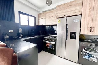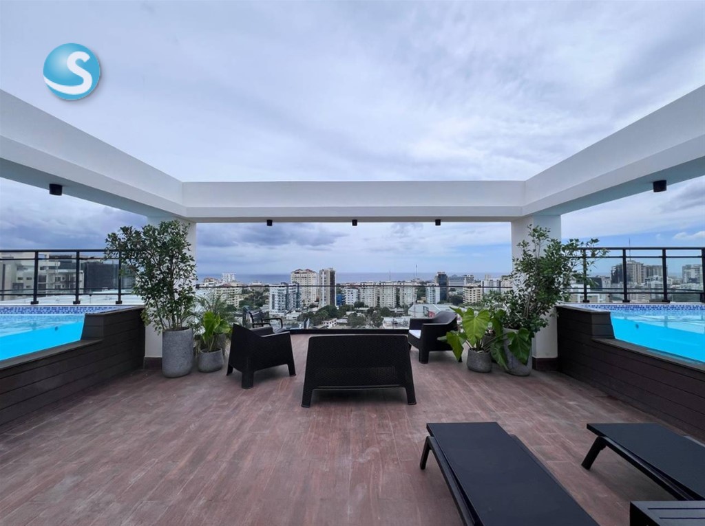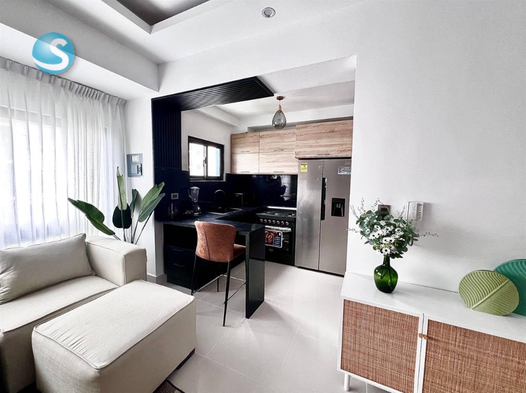 Apartamento de 1 habitación | Naco Vive con estilo en una de las zonas más exclusivas del Distrito Nacional. Este apartamento de 1 habitación combina diseño contemporáneo, acabados de calidad y una distribución funcional que maximiza cada espacio. Con 60 m² netos, ofrece una amplia habitación, 1.5 baños, sala y comedor integrados, y una cocina abierta que aporta luminosidad y fluidez. Incluye 1 parqueo y destaca por su excelente terminación y decoración de lujo, ideal tanto para vivir como para invertir. Amenidades del edificio: Lobby de doble altura Área social en el piso 16 2 jacuzzis Salón de reuniones Terrazas al aire libre con vista al mar Área infantil Gimnasio totalmente equipado Una propuesta moderna que eleva tu estilo de vida y tu inversión. ================================================= 1-Bedroom Apartment | Naco Enjoy refined living in one of the most sought-after areas of the city. This 1-bedroom apartment blends contemporary design, quality finishes, and a smart layout that makes the most of every square meter. Featuring 60 net square meters, it offers a spacious bedroom, 1.5 bathrooms, an open-concept living and dining area, and a modern open kitchen that enhances natural light and flow. Includes 1 parking space and stands out for its high-quality finishes and luxury décor, perfect for both living and investment. Building amenities: Double-height lobby Social area on the 16th floor Two jacuzzis Meeting room Outdoor terraces with ocean views Kids’ area Fully equipped gym A modern lifestyle opportunity designed to add value and comfort.