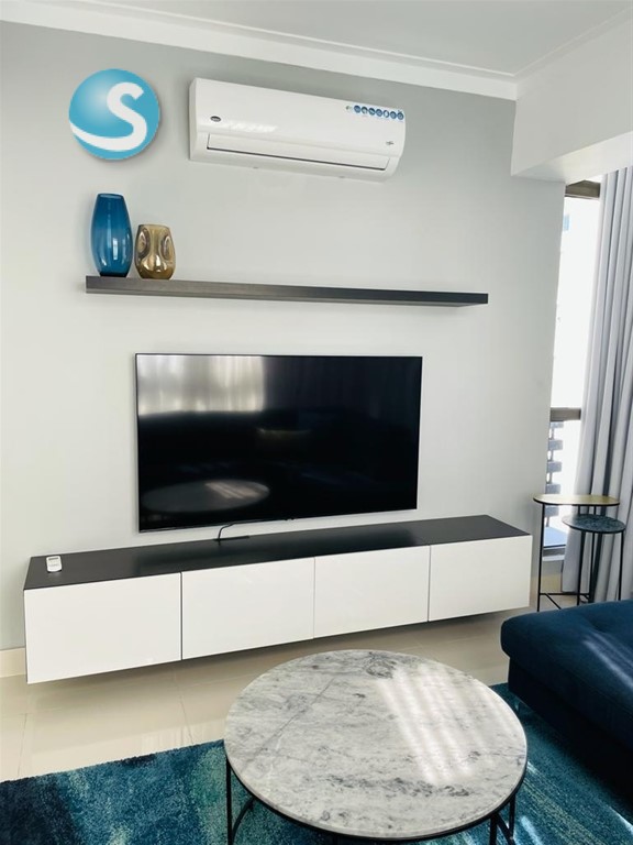 alquila apartamento amueblado de 2 habitaciones en el Ensanche Naco. Características del apartamento Amueblado por completo con aires acondicionados inverter 2 habitaciones 1 estudio Sala Comedor 1 balcón amplio y linda vista 2.5 baños Habitación de servicio cocina amplia e iluminada 2 parqueos Amenidades de la Torre Área social Piscina Gimnasio Área de niños