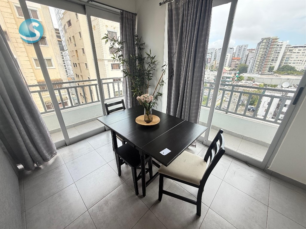 Alquiler en Naco 1 Habitación amueblado 72 m² Nivel 6 ?? US$875 1 habitación 2 baños completos Sala Comedor Cocina Balcón 1 parqueo techado 1 ascensor Gas común Lobby Servicio de conserjería