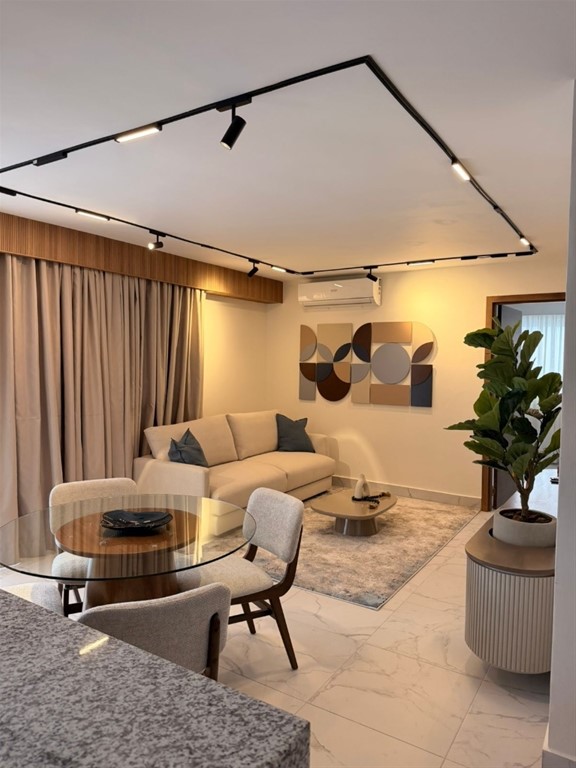 Naco Totalmente amueblado y equipado 67 m2 neto 1 habitacion 1.5 baños 1 parqueo techado Gimnasio Piscina Terraza Precio amueblado: US$1,350 (Incluye Mantenimiento)