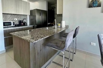 Naco Precio: US$1,100 (incluye mantenimiento y Netflix) Características del apartamento: * 1 habitación con baño y walk-in closet * 1 baño de visita * Sala y comedor * Cocina con desayunador * Área de lavado * Balcón * Locker * 1 parqueo * 3er nivel Amenidades del residencial: Cine Gimnasio 2 Jacuzzis Salon multiuso Area de juego de niños Bar Lounge