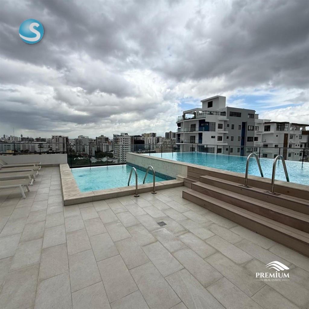 Naco - Amueblado Nuevo a estrenar Nivel 2 69mts 1 habitación con W/C 1.5 baños Cocina Sala/comedor Área de lavado 1 parqueo Amenidades: Piscina Jacuzzi Salón para eventos Gimnasio Área de juegos para niños Terraza techada y destechada Lobby amueblado y climatizado 2 ascensores Planta full Precio de venta: US$180,000 Precio de alquiler: US$1,200