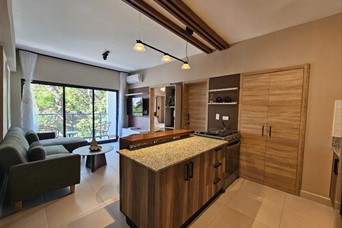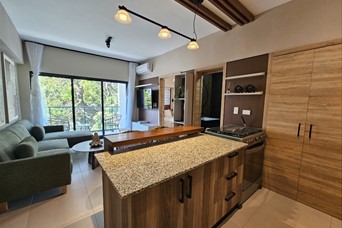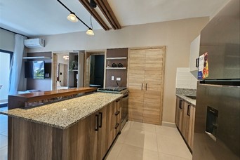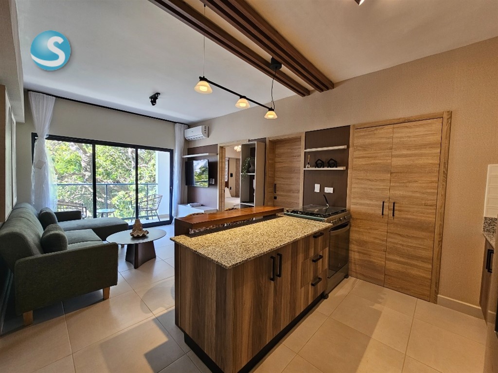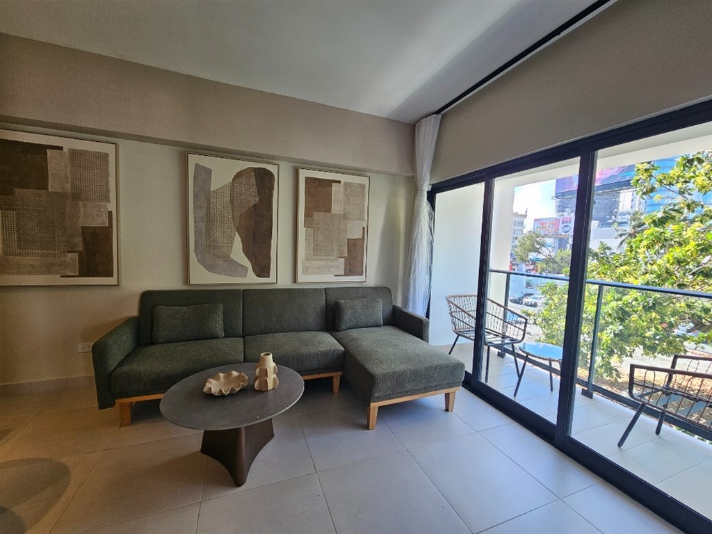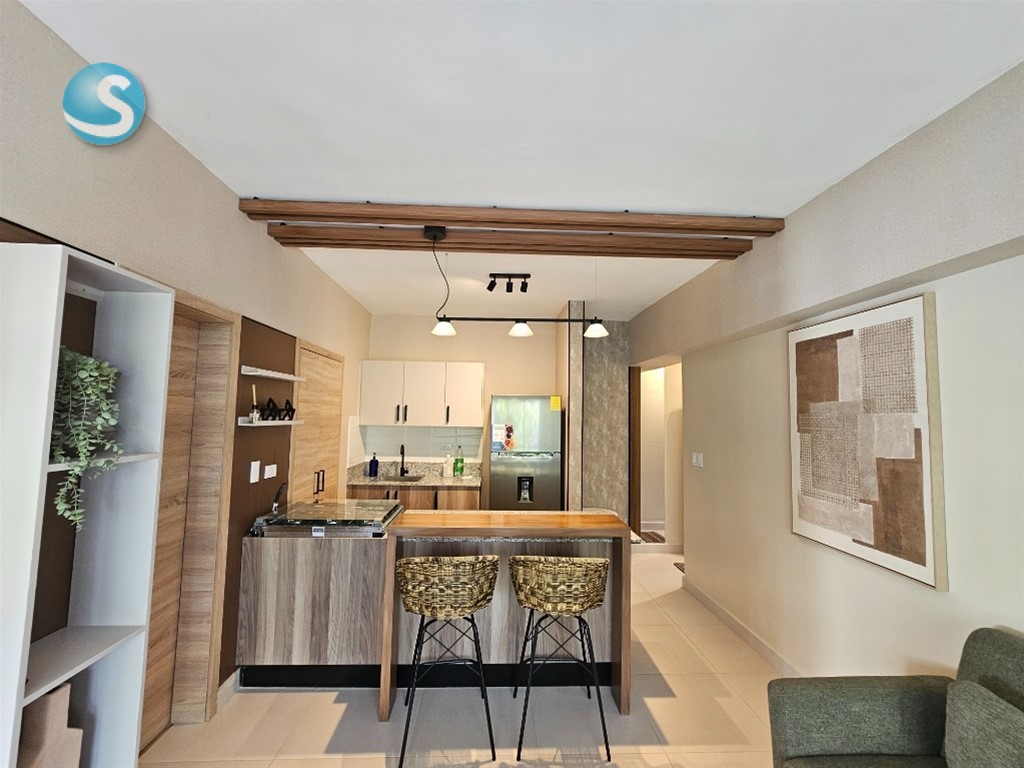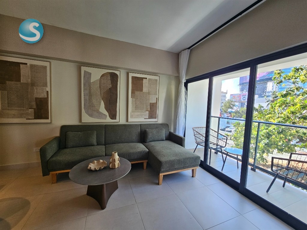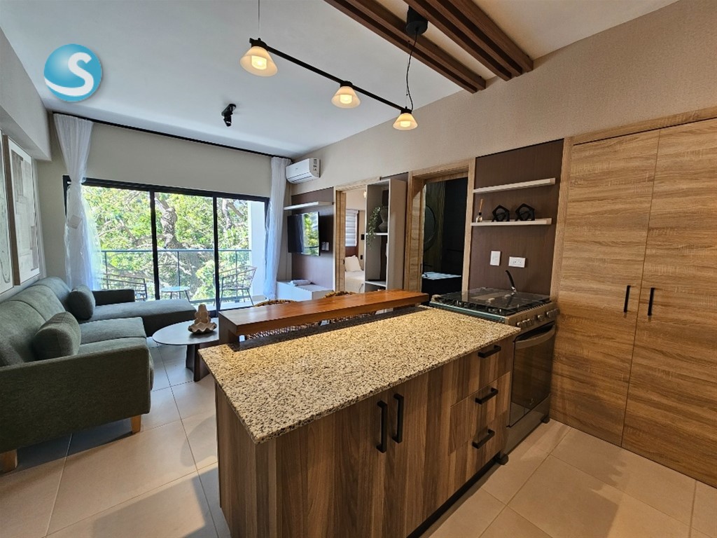 Bello y acogedor apartamento totalmente amueblado! 1 habitación con su walking closet y baño balcon sala cocina con desayunador medio baño 1 parqueo lobby piscina gym salon multiuso salon de juego de billar salon de trabajo