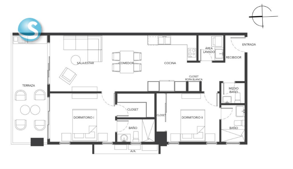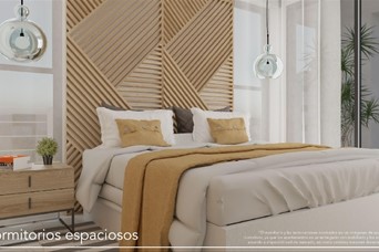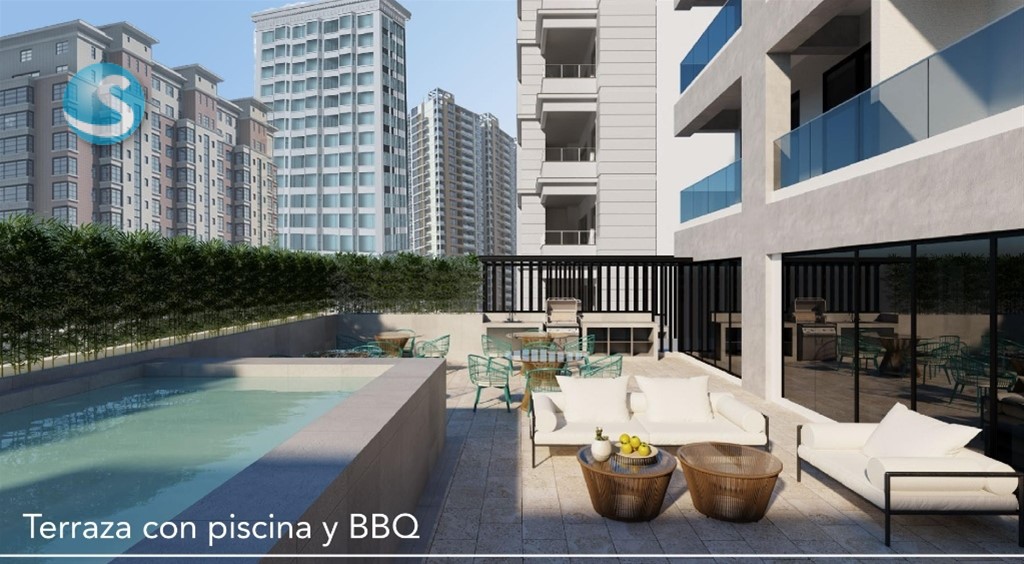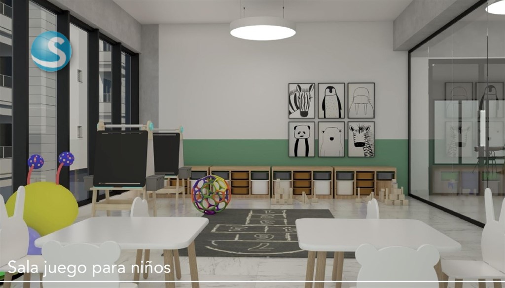 Vista del apto completamente despejada dos habitaciones 2.5 baños gran cocina sala y comedor habitacion principal con walkin closet locker 2 parqueos areas sociales psicina gimnasio area infantil are de trabajos salon de reuniones