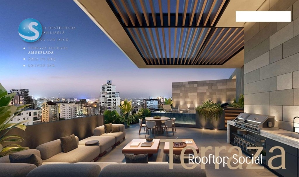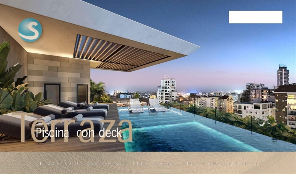Proyecto de apartamento en Naco: 170 mts2 3 habitaciones, principal con baño y walk in closet 2.5 baños Cocina Estudio Area de lavado Cuarto de servicio Balcón 2 parqueos techados Terraza con Bar and Lounge BBQ Piscina Deck Driveway Lobby climatizado y amueblado Estar de choferes Parqueos de visitas Deposito de basura con cuarto refrigerado Gimnasio Antisísmica 2 ascensores Planta eléctrica Gas común Planta de tratamiento de agua Intercom