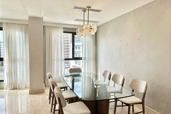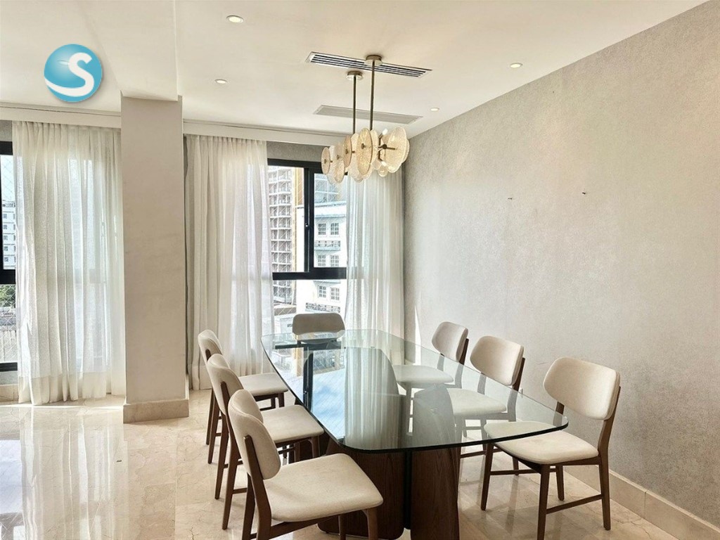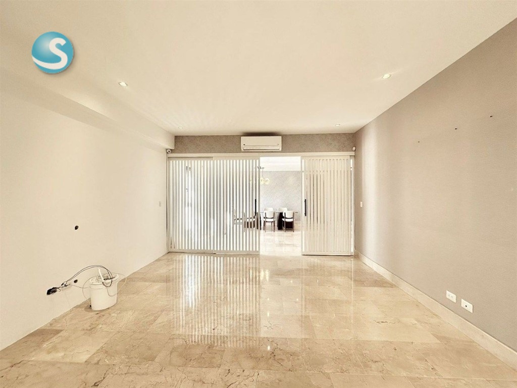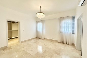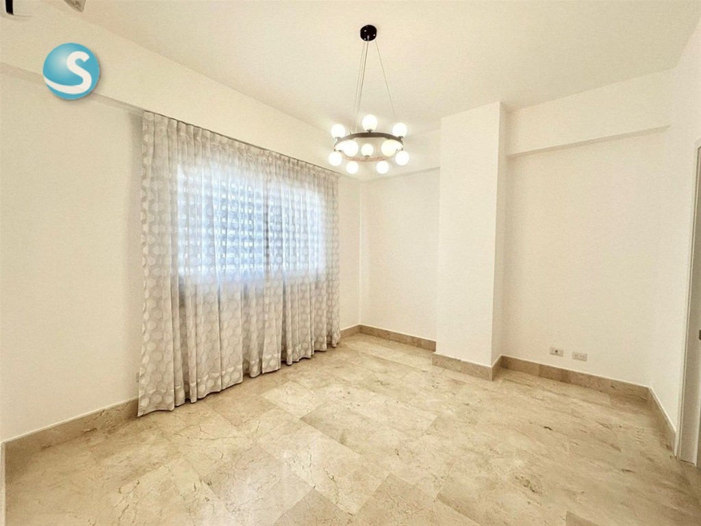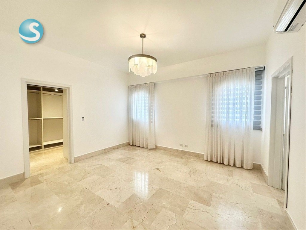 Amplio y elegante apartamento en alquiler ubicado en torre exclusiva 270 mts totales 234 mts netos 3 habitaciones con walk-in closet Tres (3.5) baños Family room Estudio Sala Comedor Cocina fría Área de lavado Habitación de servicio con su baño Balcón con vista a la ciudad Tres (3) parqueos techados Un (1) locker Pisos en mármol Dos (2) ascensores Gas común Amenidades de la torre: Lobby climatizado Gimnasio Área infantil Salón de eventos Terraza destechada Planta eléctrica full Seguridad 24 horas Cámaras de vigilancia Cuarto para choferes Pozo tubular Doble bomba de agua Sistema de filtración de agua Precio de alquiler US$4,300.00 Mantenimiento incluido Incluye línea blanca + aires acondicionados