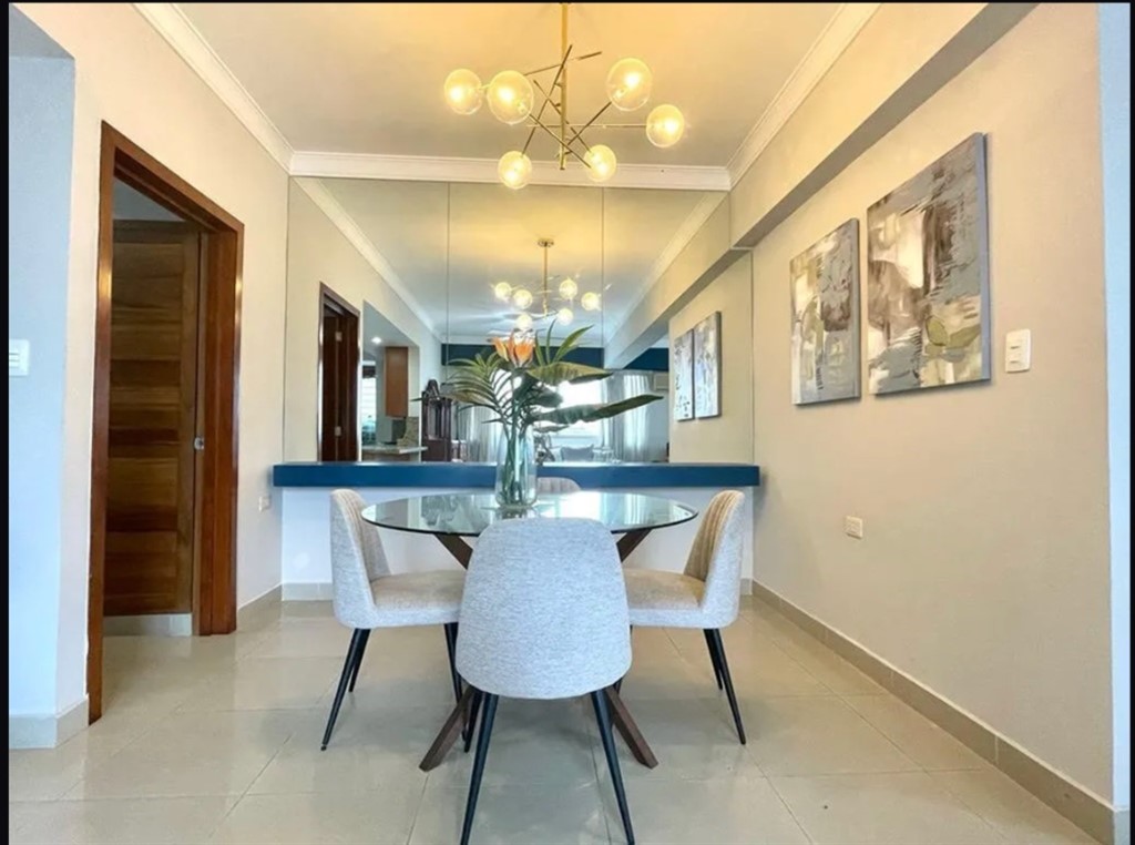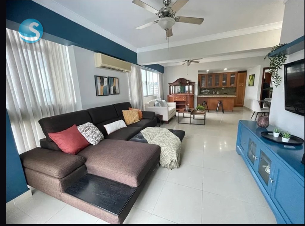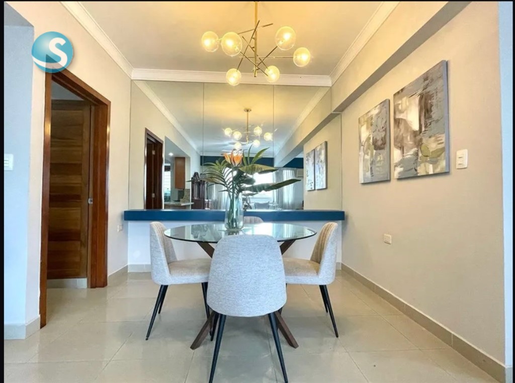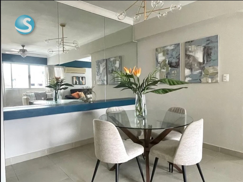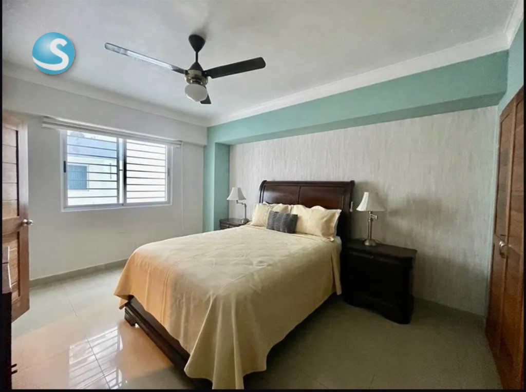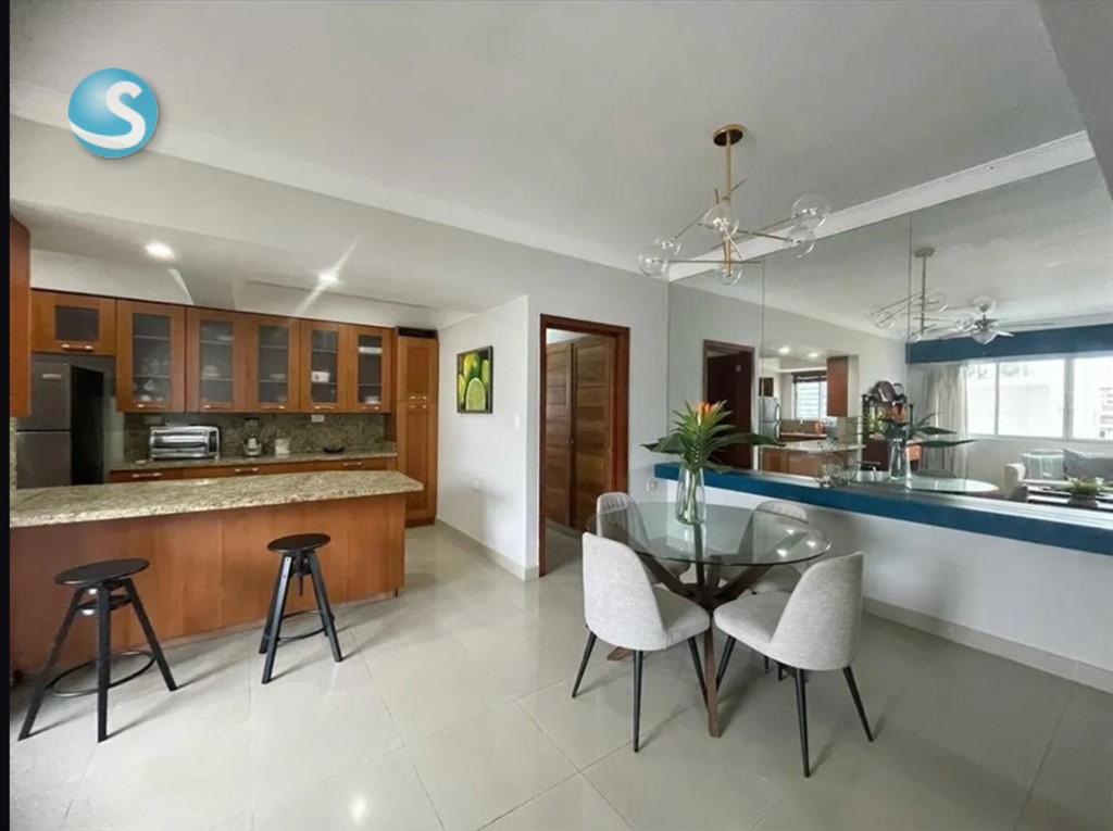 ¡Cómodo Apartamento Amueblado en Alquiler en Naco! Ubicación privilegiada en calle tranquila, en una torre bien conservada. Características: Área: 110 m² Habitaciones: 2 habitaciones, cada una con baño privado y clóset ????? Sala amplia ??? Comedor acogedor ??? Cocina abierta con desayunador ?? Medio baño de visitas ?? Área de lavado ?? Baño de servicio ?? Parqueo: 2 espacios techados y paralelos ???? Áreas comunes: Piscina y gimnasio ??????????? Dos ascensores ???? ¡Ideal para quienes buscan confort, ubicación céntrica y seguridad!