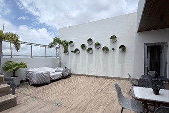 Apartamento remodelado en Alquiler Ensanche Naco con Linea Blanca. 134.12 mt2 -2 habitaciones -Baño y Walk-in closet en ambas habitaciones -Baño habitación principal remodelado con topes en mármol. -Sala -Comedor -Estudio -Medio baño (remodelado con topes en marmol) -Balcon -habitacion de servicio -2 parqueos paralelos (primer piso) Torre: -Año de construcción 2021 -Paneles solares recién instalados para consumo energético de área sociales. -Lobby Climatizado -Seguridad -Cerco electrónico en toda la torre. -Planta full -Porton Electrico -2 Ascensores -2 areas sociales (cada una con salón para eventos climatizado y amueblado, amplia terraza, bar, bbq y jacuzzi) -Gimnasio -Area de niños -Area de juegos