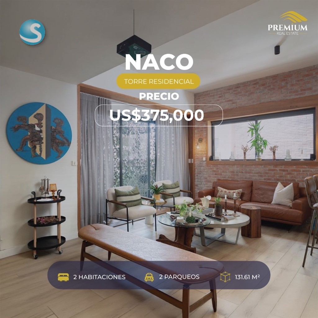 Naco Torre residencial Apartamento con línea blanca incluido 2 habitaciones 2.5 baños Balcón Nivel 3 2 parqueos 131,61 mt2 netos Sala Comedor Cocina Área social Gym Terraza BBQ Salón cerrado Precio de Venta US$375,000 Año de construcción 2017 Mantenimiento RD$13,000