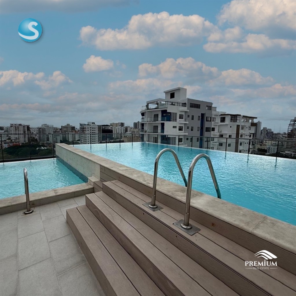 Naco - Amueblado Nuevo a estrenar Nivel 2 69mts 1 habitación con W/C 1.5 baños Cocina Sala/comedor Área de lavado 1 parqueo Amenidades: Piscina Jacuzzi Salón para eventos Gimnasio Área de juegos para niños Terraza techada y destechada Lobby amueblado y climatizado 2 ascensores Planta full Precio de Alquiler Amueblado: US$1,200