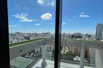 *Exclusivo Apartamento en Alquiler ( con Línea Blanca ) en Torre de Máximo Lujo, ubicado en nivel alto con vista completamente despejada. Una opción ideal para quienes buscan lujo, confort y ubicación privilegiada en el corazón de Santo Domingo*. Precio: US$1,350.00 Características del apartamento: -Amplio balcón con excelente vista -Sala - comedor con diseño abierto -Moderna cocina -1 habitación con baño y walking clóset -Baño de visita -1 parqueo techado -Incluye línea blanca completa: Aire central, estufa, nevera, microondas, extractor, lavadora y secadora. Amenidades de la torre: -Lobby espectacular de Doble altura -3 ascensores (incluido uno de carga) -Piscina infinity con vista panorámica -Gimnasio totalmente equipado -Área de Bar -Terraza techada y destechada -Playground infantil