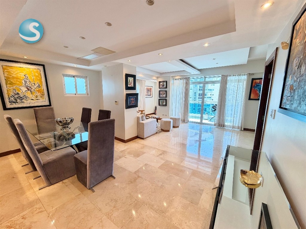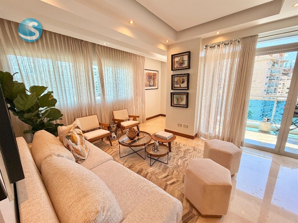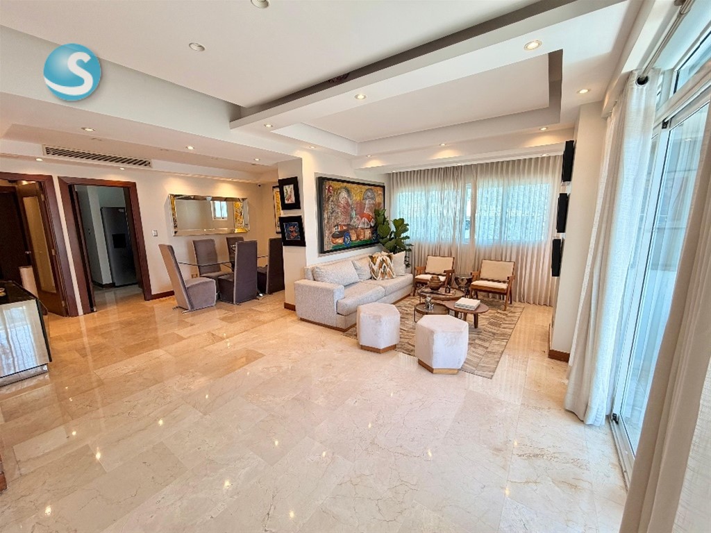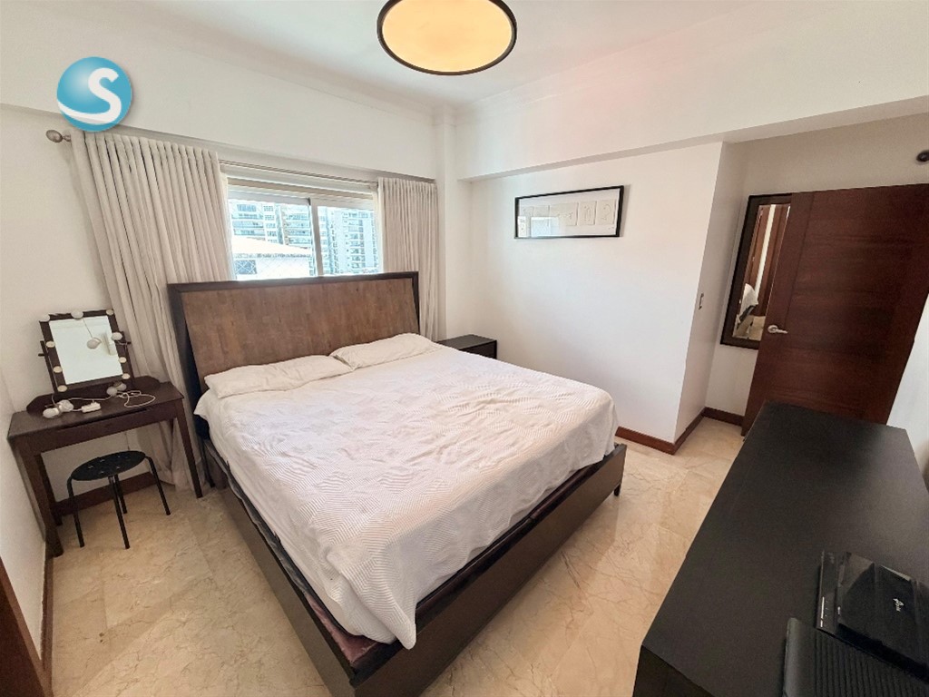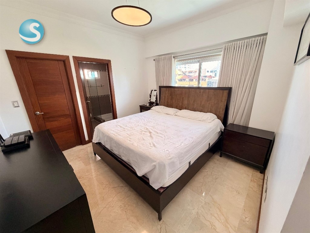? Confort y Location es lo que ofrece este apto en el Sector Naco ? Amplio apartamento amueblado de 137 m² que lo tiene TODO: ??? 2 habitaciones, cada una con su baño ??? Estudio ideal para home office ??? Cocina cerrada ?? Balcón para desconectar del día ?? Área de lavado + cuarto de servicio ? Pisos en mármol Además, la torre te ofrece amenidades pensadas para tu estilo de vida: ?? Jacuzzi ?????? Gimnasio equipado ?? Lobby climatizado ?? Ascensor ?? 2 parqueos techados + locker ?? Precio: USD1,800